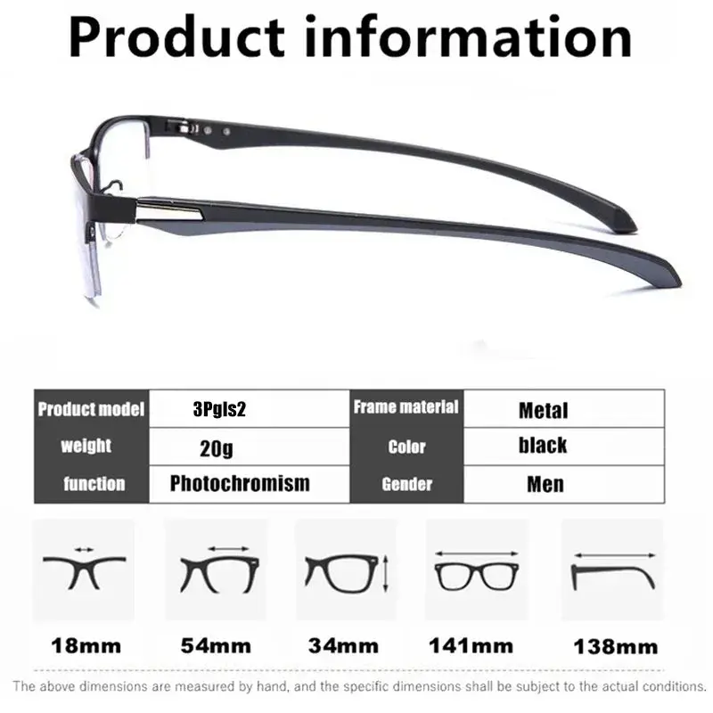 Progressive Multifocal Photochromic Reading Glasses Anti-blue Light Far Sight Glasses Men Half Frame Business Presbyopia Glasses