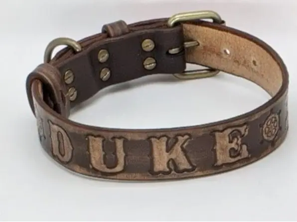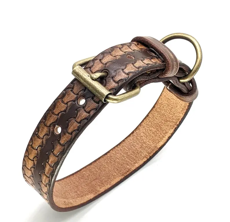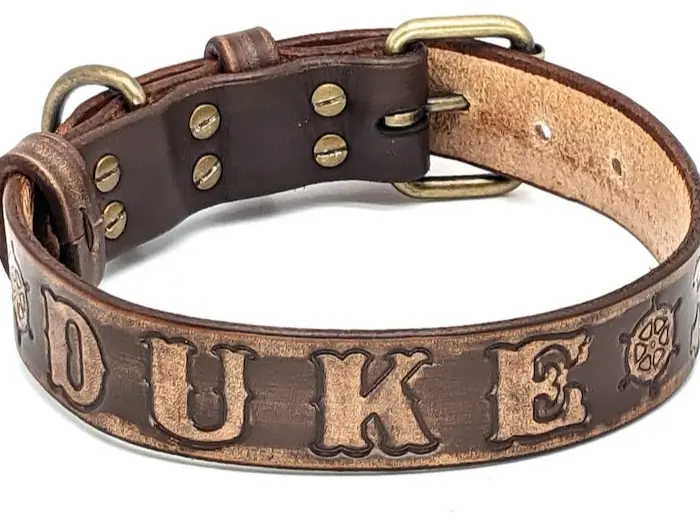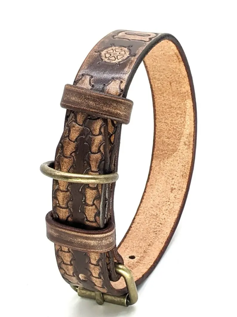 Get the best quality handcrafted leather dog collar, designed for durability, comfort, and unique style. Made from full-grain genuine leather, this collar is tanned and painted by hand using custom Italian inks and finish oils for a one-of-a-kind look.