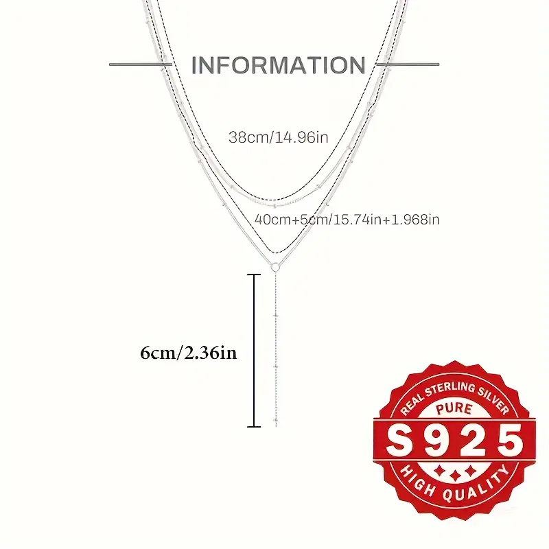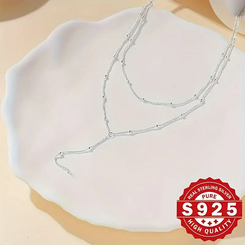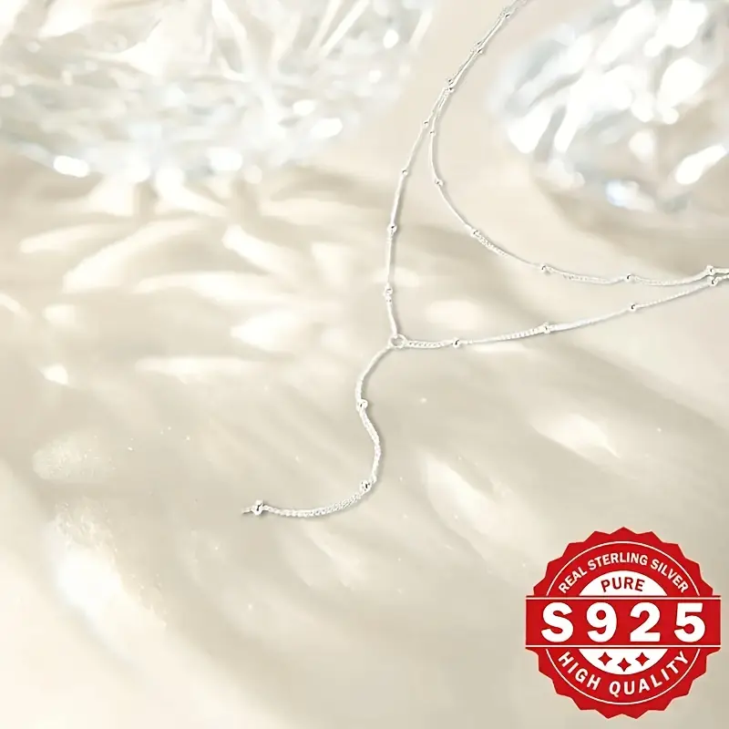 925 Sterling Silver Beaded Y-Shaped Chain Necklace, Multi-Functional Layered Design, Low Allergenic, Bohemian Style, Elegant Charm for Women