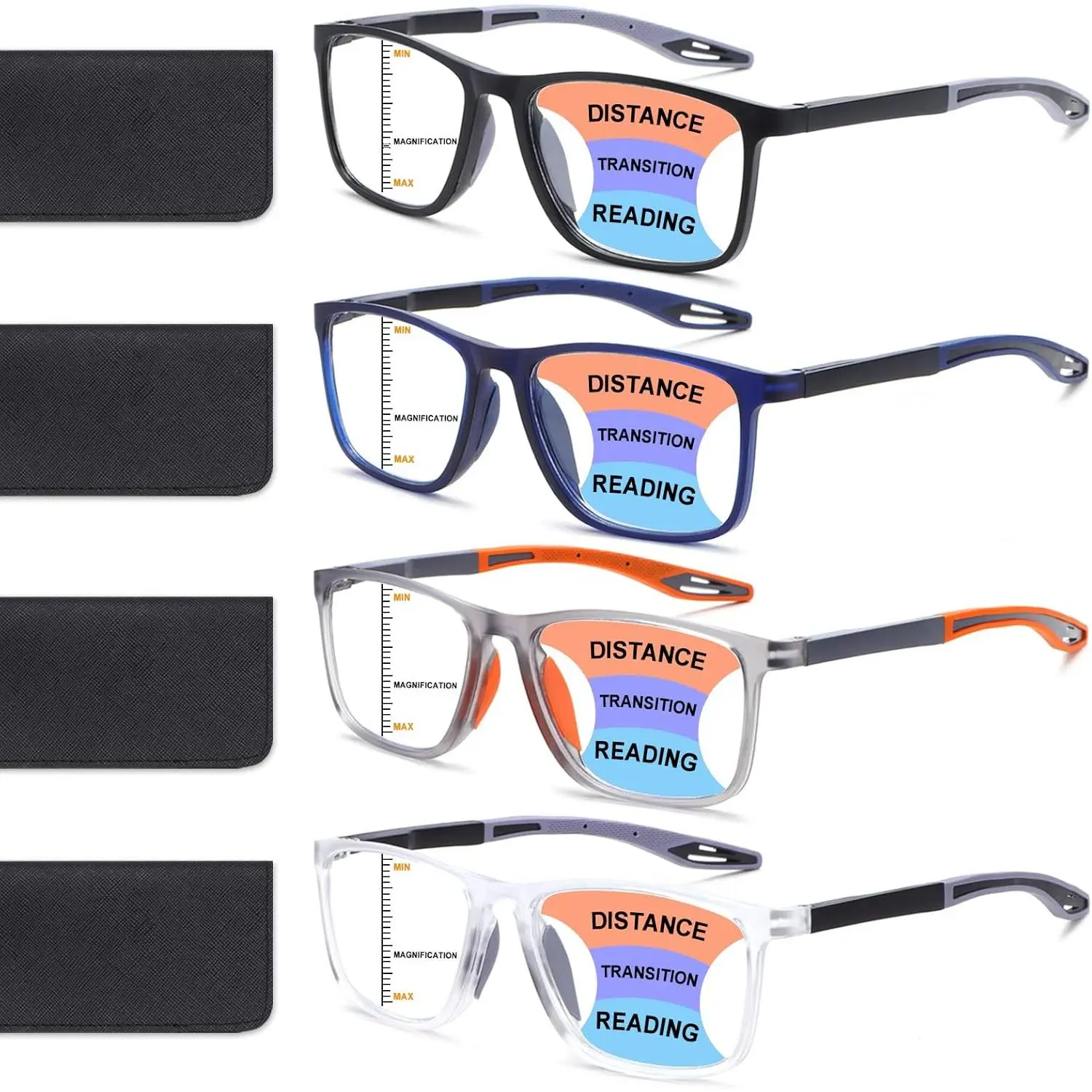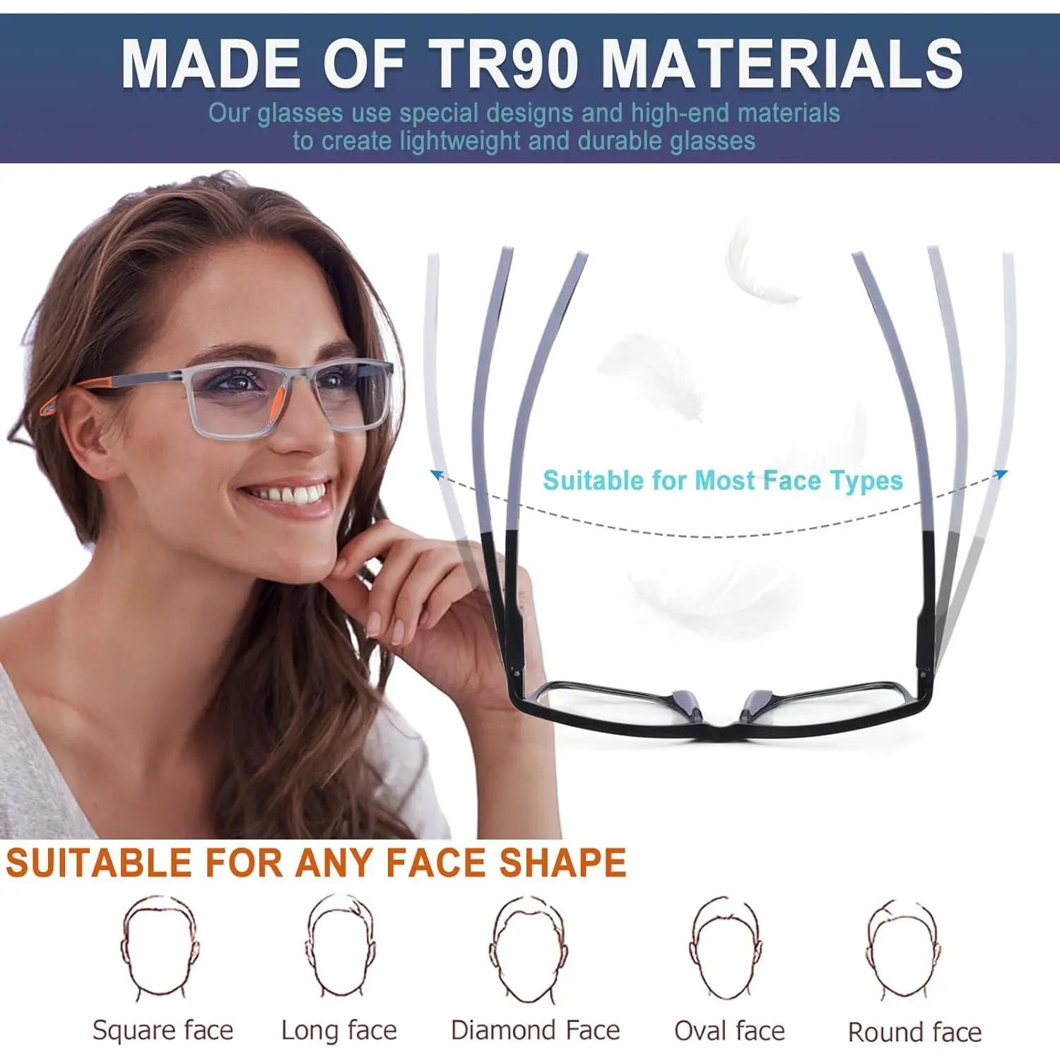 ·[Sports Style and Soft Design]: Professional sports progressive reading glasses for men women , soft TR90 temples can bend freely and are not easily broken,The nose pads is made of environmentally friendly silicone material, which fits the face and anti slip and no redness on your nose, Sturdy and flexible spring hinge, wear without pressure and do not pinch face for long term wear, Whether is working, reading, watching TV and other occasions all can wear this progressive multifocal readers