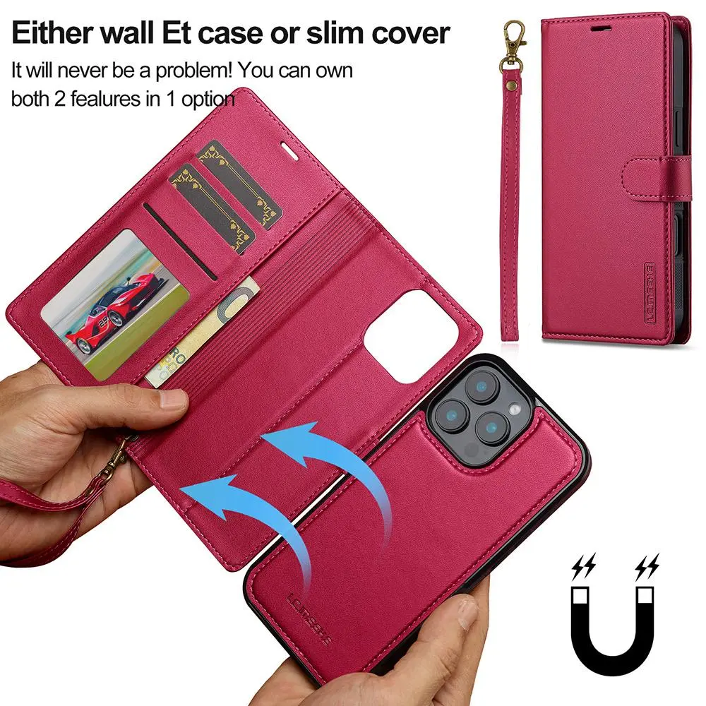 Magnetic Phone Case with Card Slot, 1 Count PU Leather Card Wallet Flip Phone Cover with Wristband, Phone Accessories for iPhone