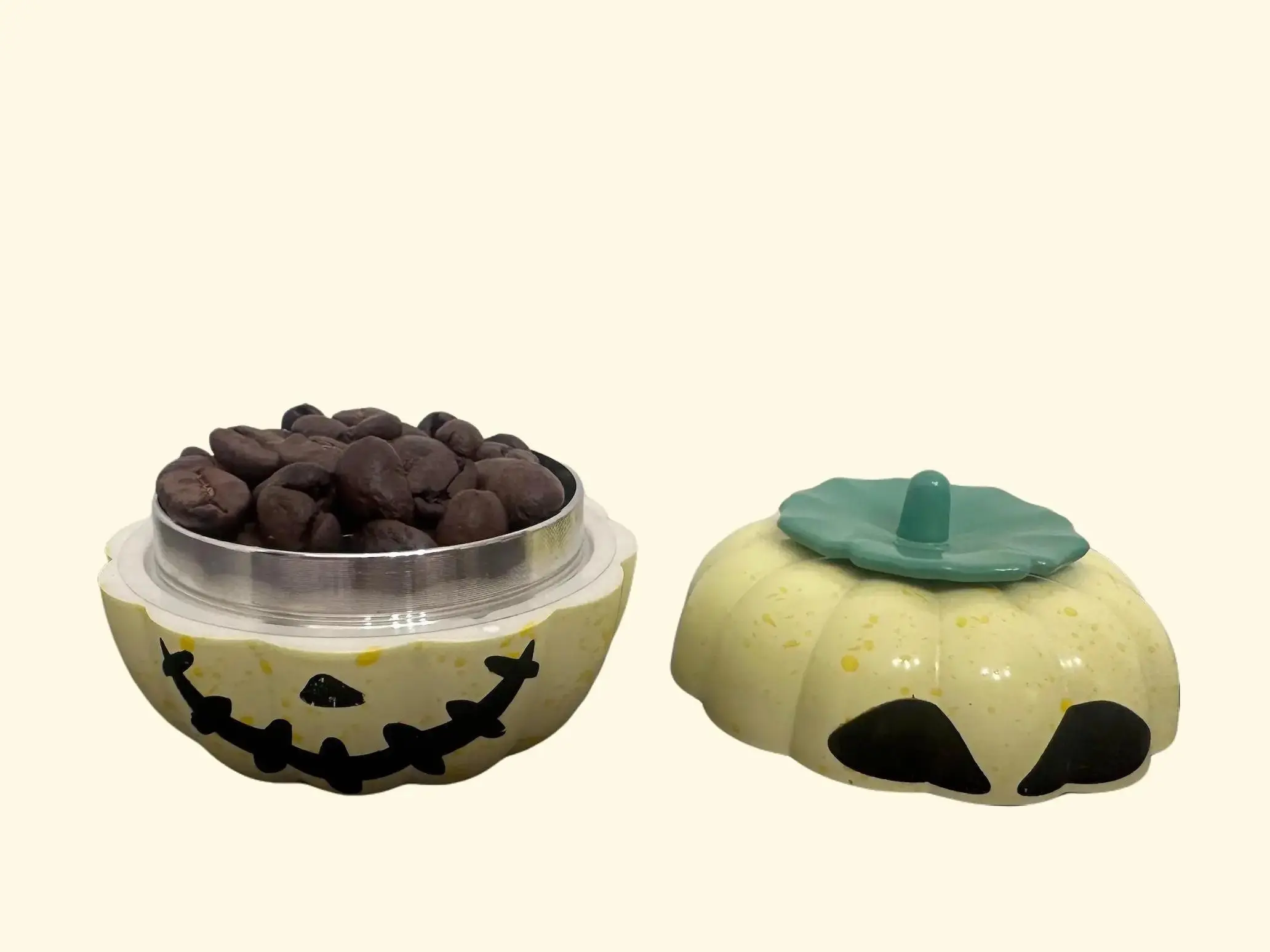 Embrace a touch of fun and spooky charm with the Spooky Cursed Pumpkin Coffee Bean Grinder! With its playful yet eerie pumpkin face, it adds a unique, whimsical flair to your collection, perfect for any season. Available in Spicy Orange, Grim Green, and Ghostly White, each color brings a fresh and vibrant twist to its design.
