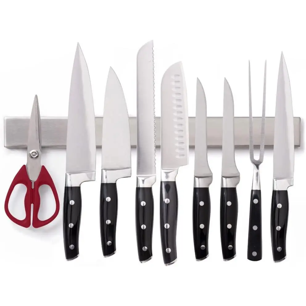 Heavy Duty Stainless Steel Magnetic Knife Holder, Hold Up to 6 lbs, Wall Mounted Magnet Strip for Knives, Easy to Install Bar, Secure Store and Organize Kitchen Tools, Art Supply, 10 Inch