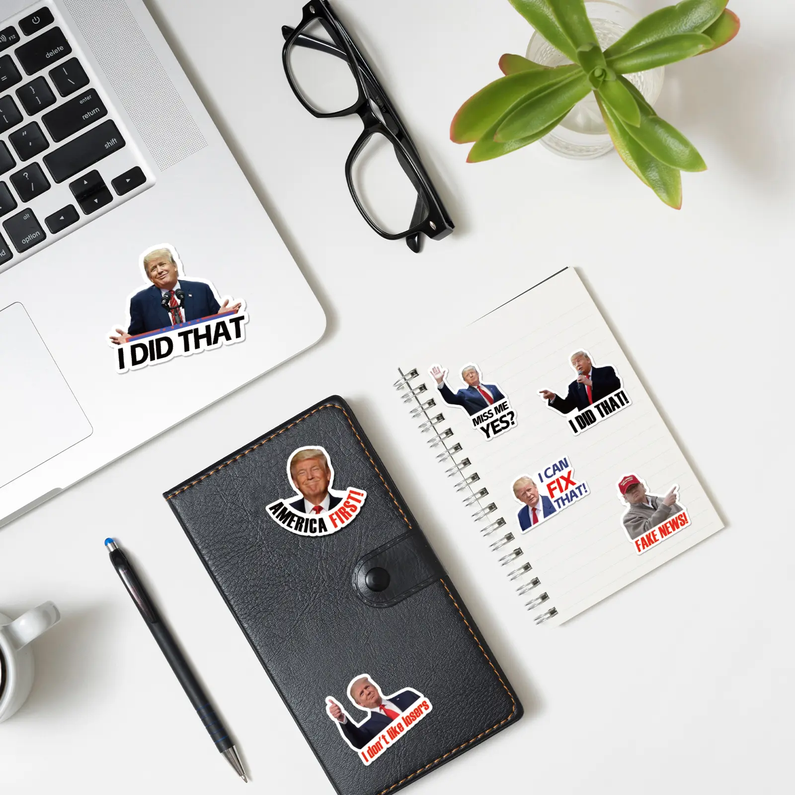 100PCS Funny STICKERS(Includes 20 different versions) Donald Trump 100 Pcs Large Size Stickers for Laptop, Phone, Car, and Water Bottle - Trump Decal for 2025