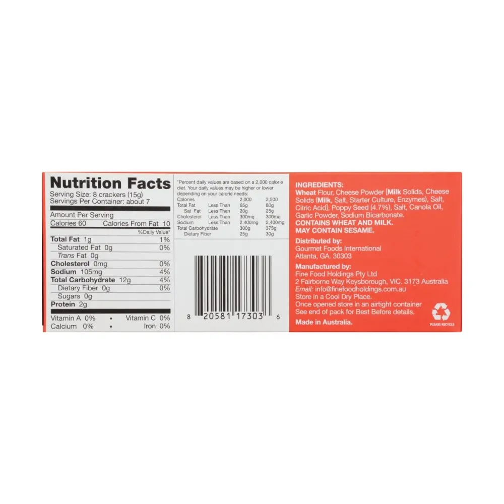 2s Company Poppy Seed Wafer Crackers are very pleasing to the eye. These beautiful crackers contain a mild toasty flavor stubbed with nutty poppy seeds. These crackers pair well with a variety of flavors making them a must-have!