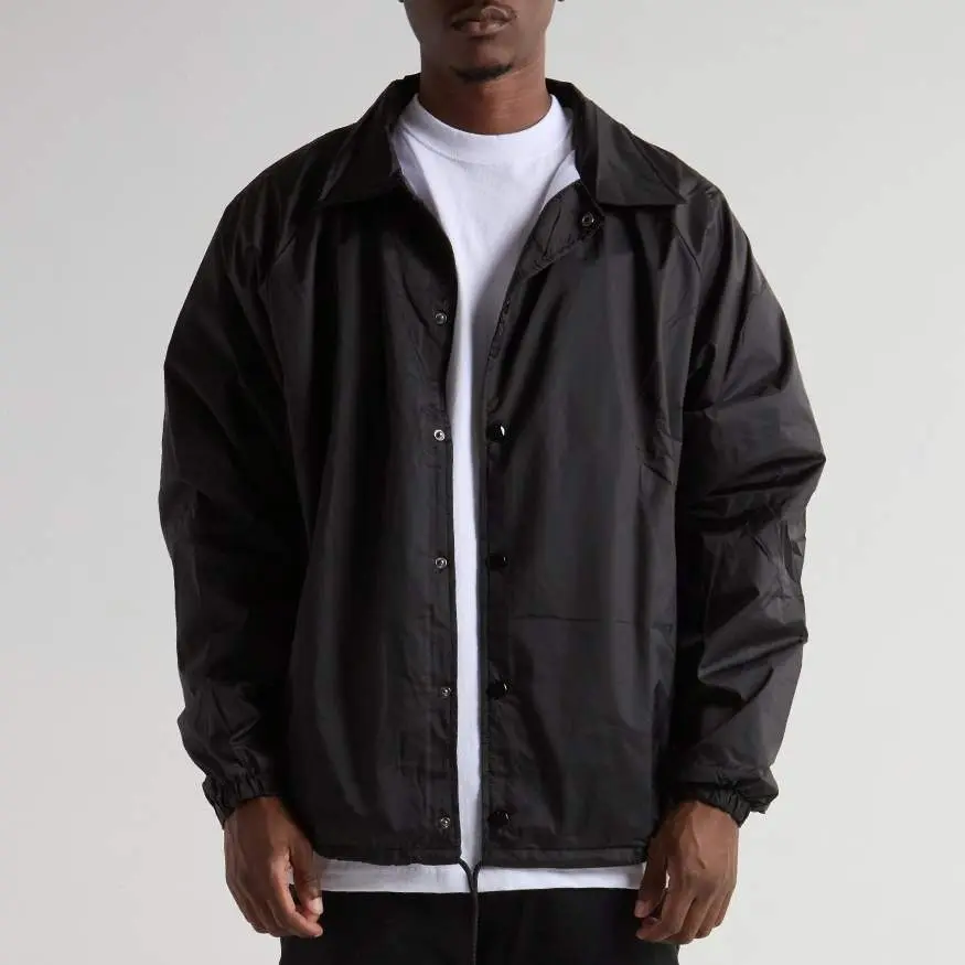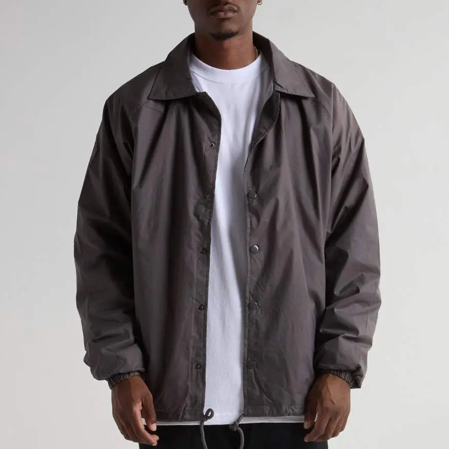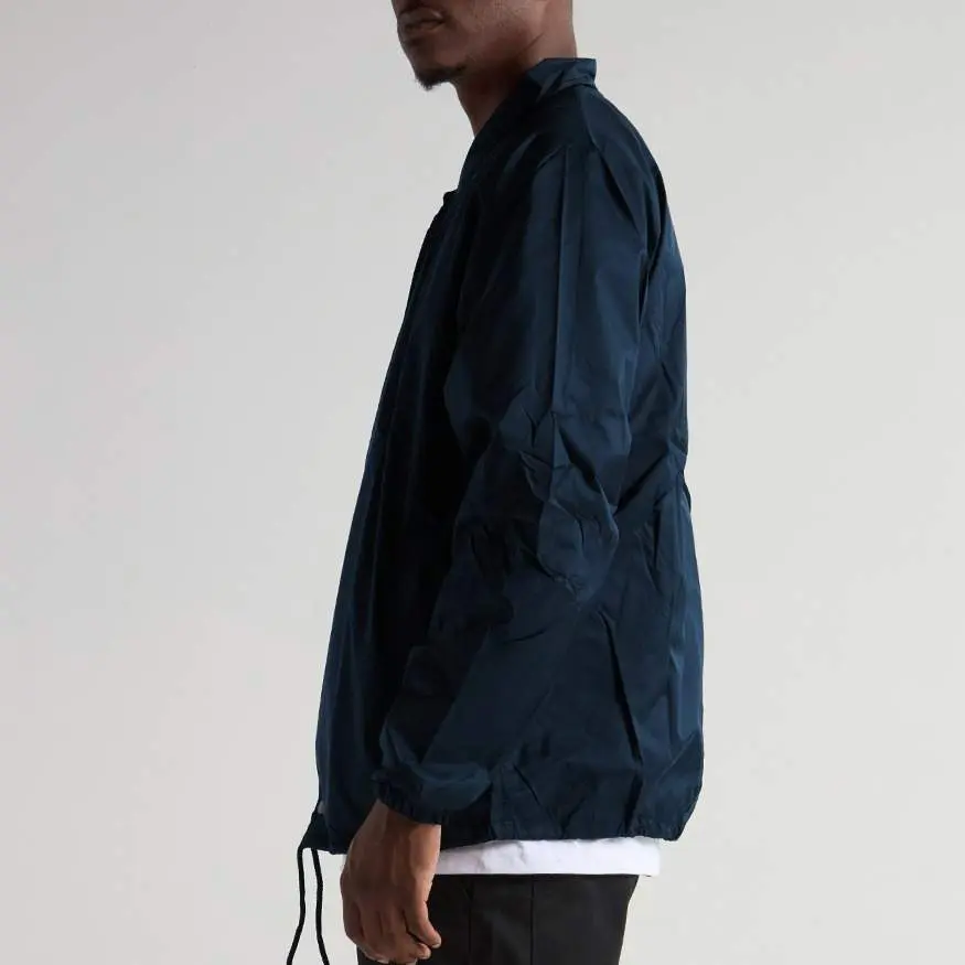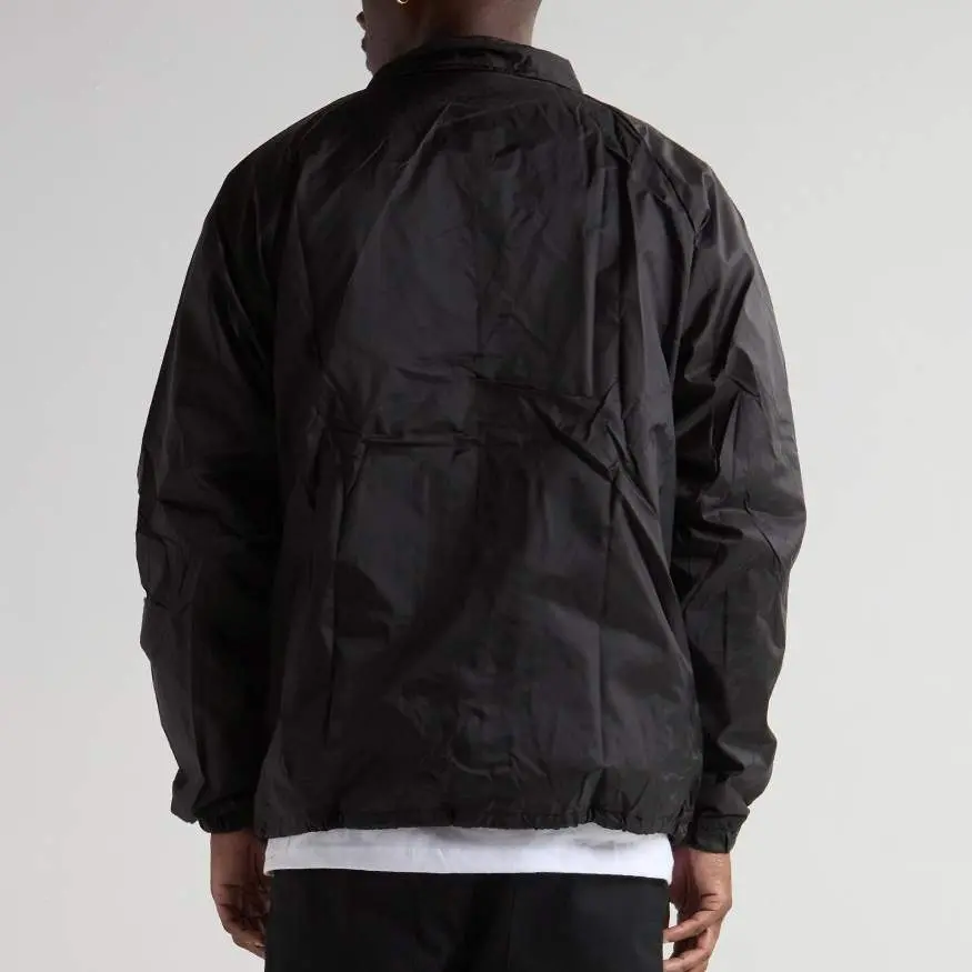 Shaka Wear Coach Jacket Windbreaker is a staple in streetwear. It's water-resistant with a polyester lining for warmth. The padded collar allows you to pop it for style or warmth. Drawstrings at the bottom let you adjust the opening. Dyed-to-match snap buttons and lycra-infused cuffs add details. Stay cool and on trend!