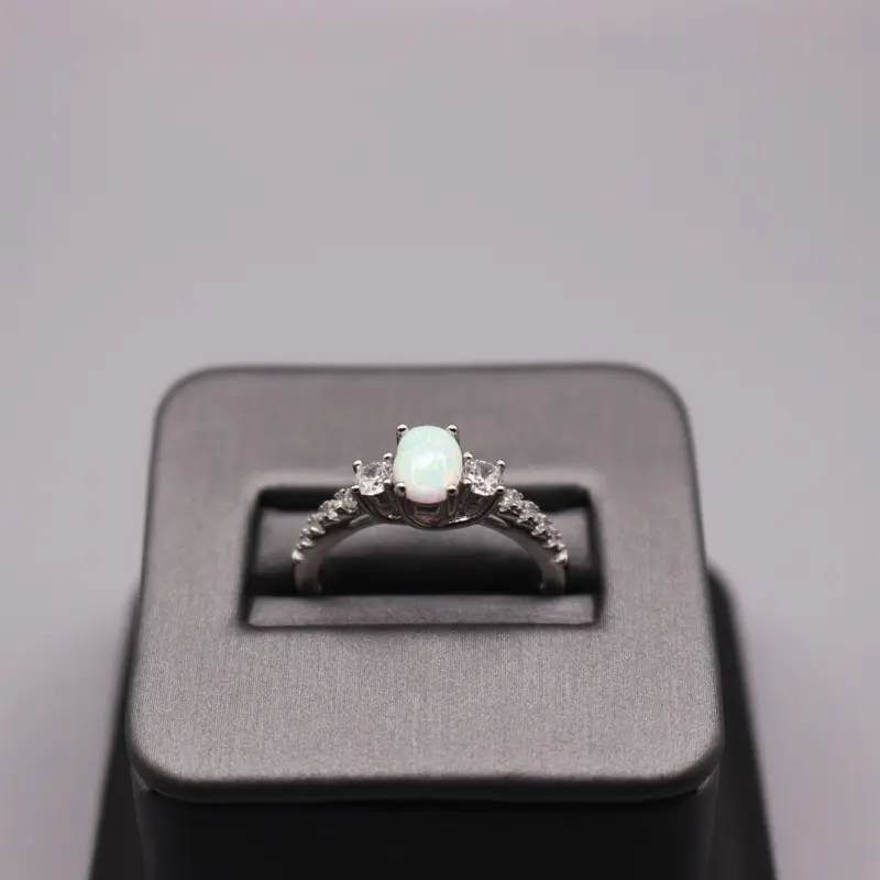 * Cubic Zirconia Stones: Surrounding the opal, the cubic zirconia stones enhance the overall brilliance and sparkle, creating a dazzling effect.