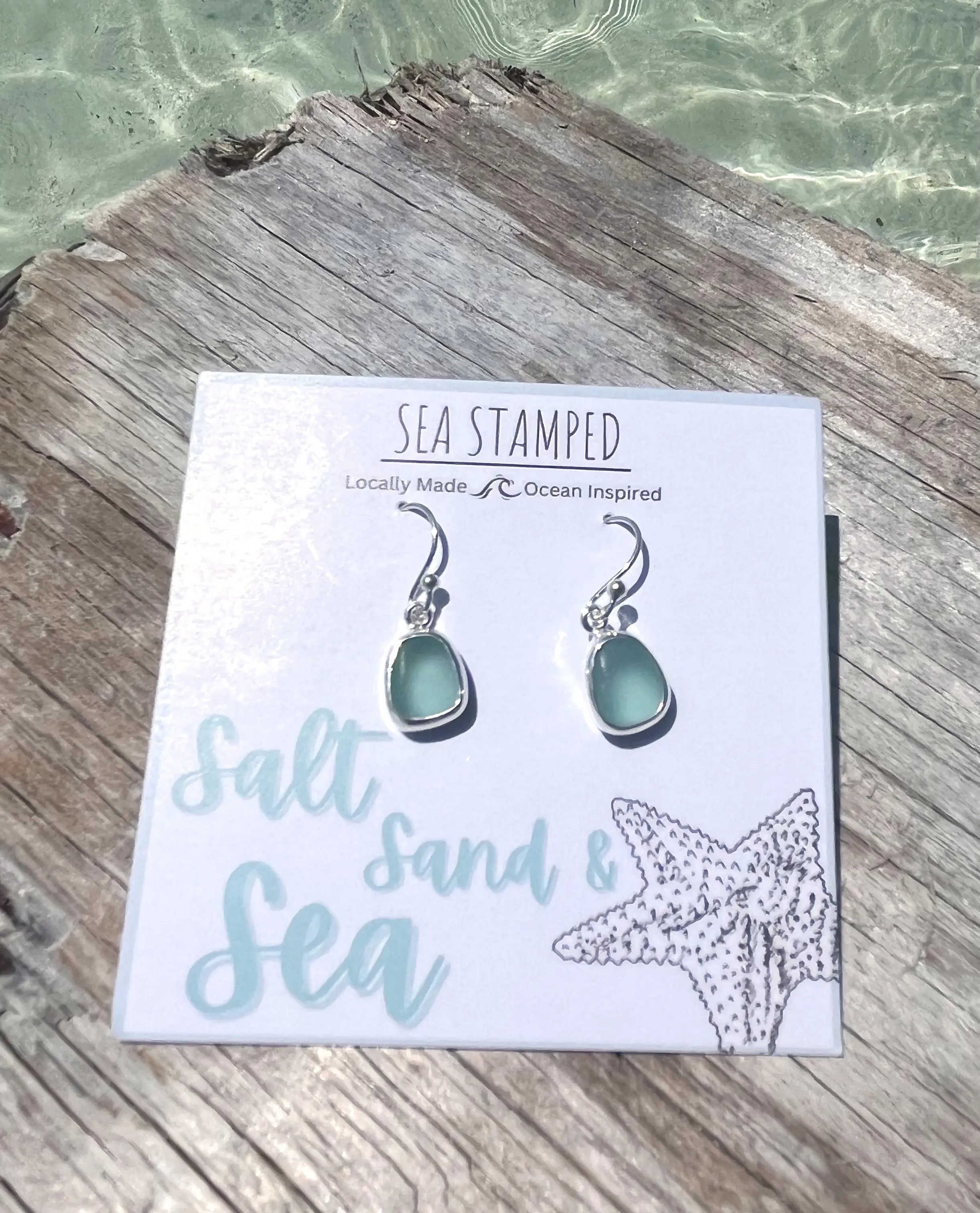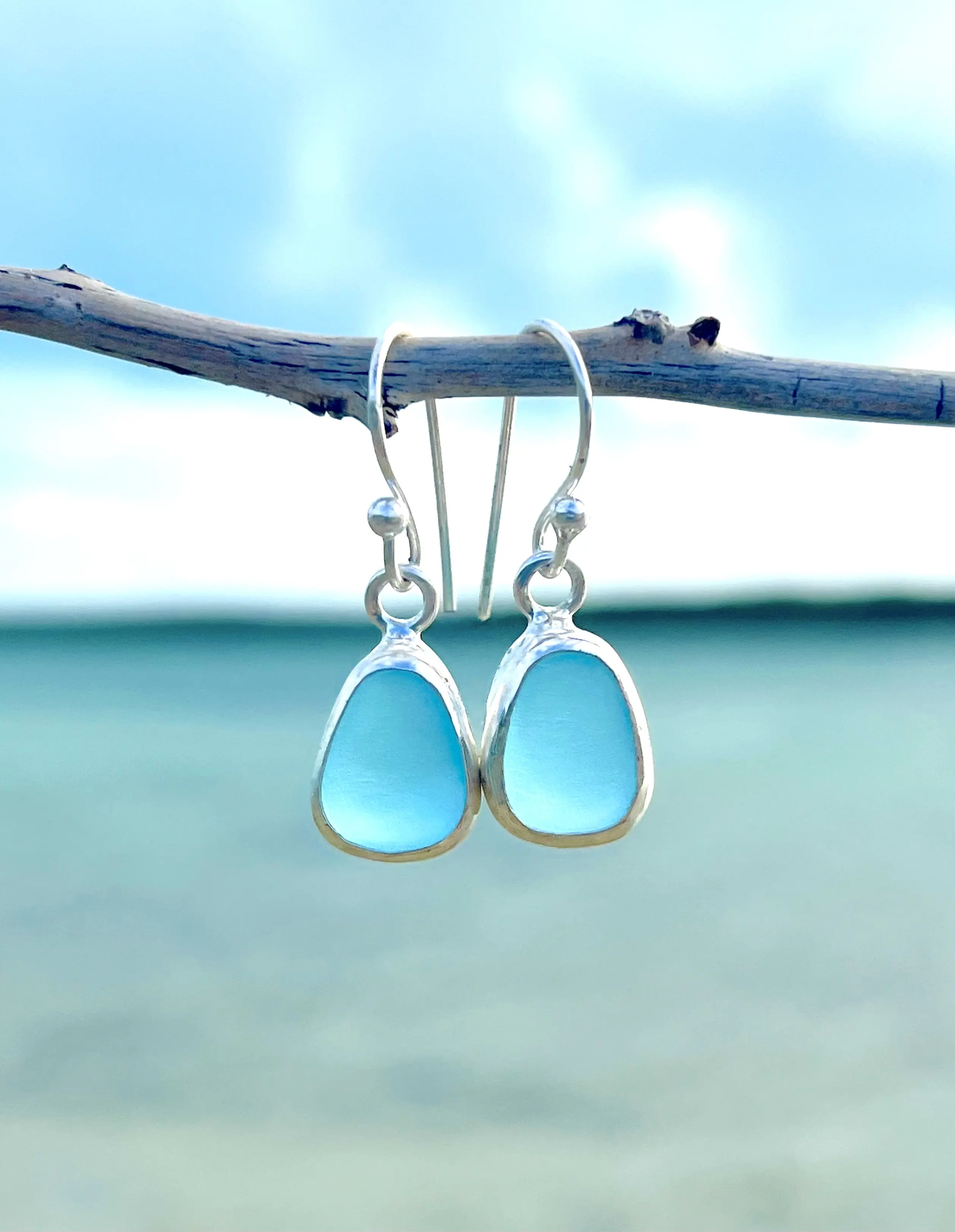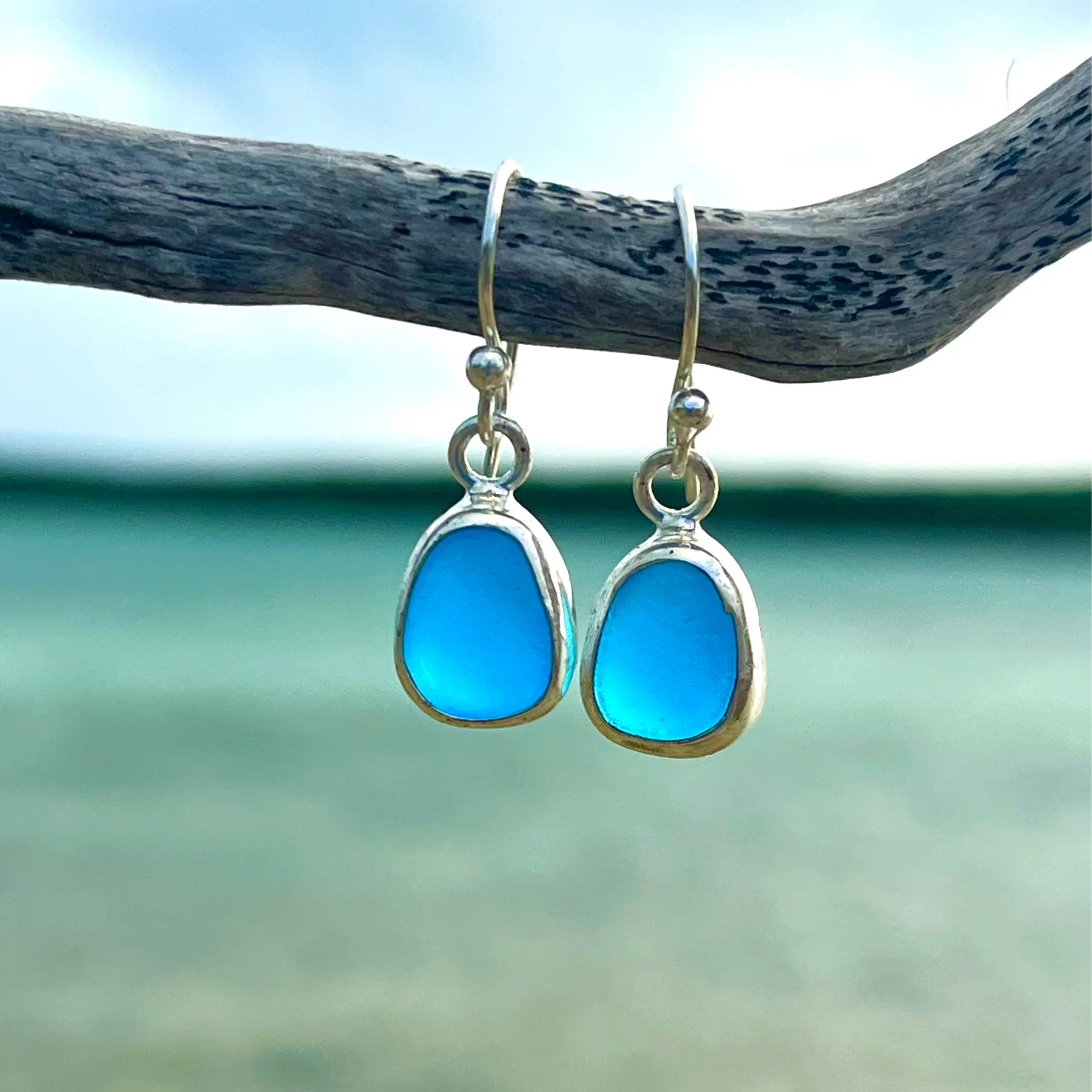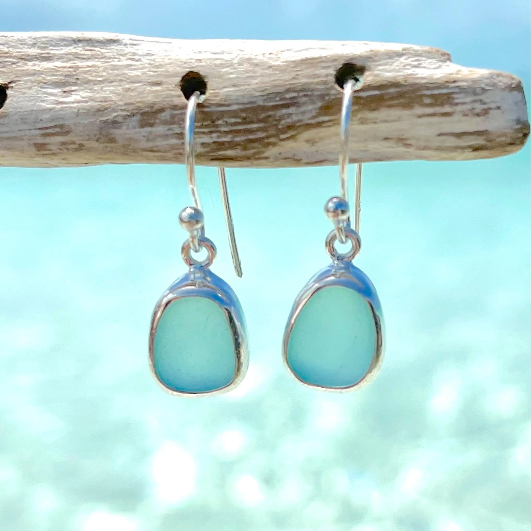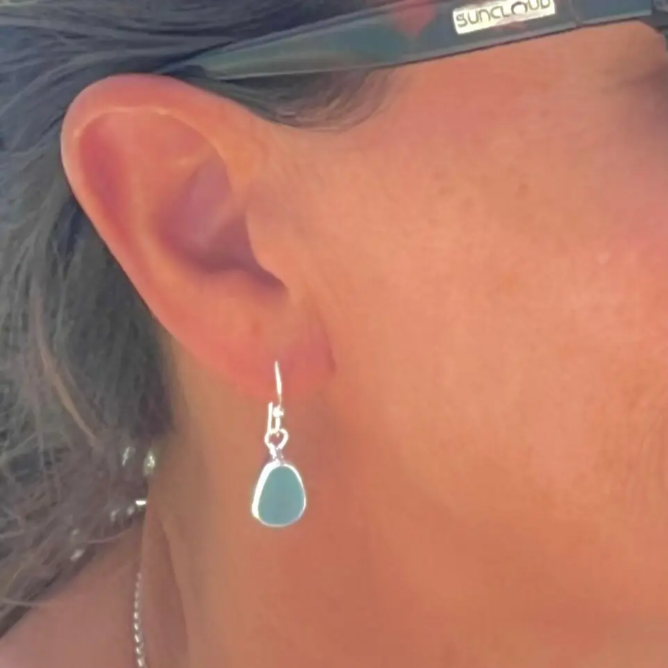 The earrings measure about 25mm or 1 inch in length. Each piece of sea glass will vary slightly in size and shape as they are hand tumbled and unique. Perfect for beach outings, these earrings are a great choice for any beachy occasion.