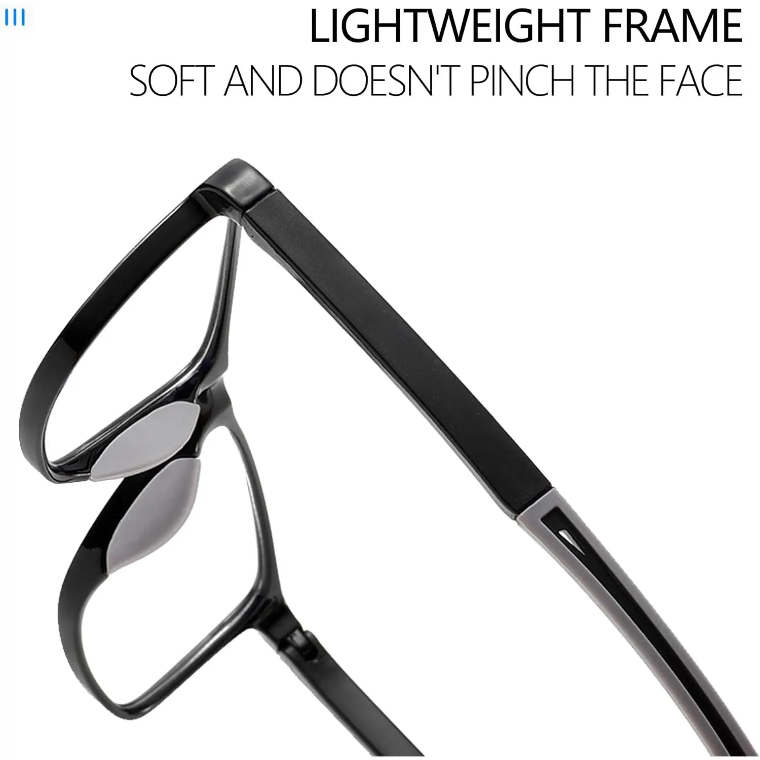 ·Comfort Wear: The lightweight plastic frames reduce pressure on the face while the rubber nose pads and temple tips are soft, comfortable, and non-slip, ensuring lasting comfort.lightweight glasses frame weight 11g (without lenses).