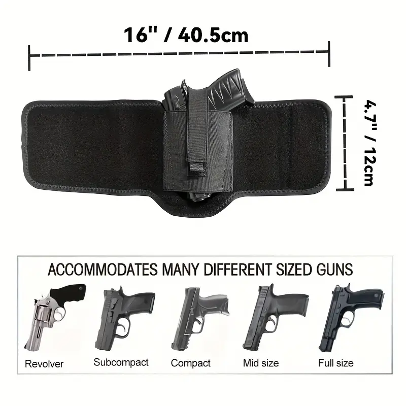 Multi-Functional Concealed Carry Holster - Suitable for Both Hands, Adjustable, Fits Compact and Subcompact Guns, Durable 1000D Nylon, with Safety Snap, Black