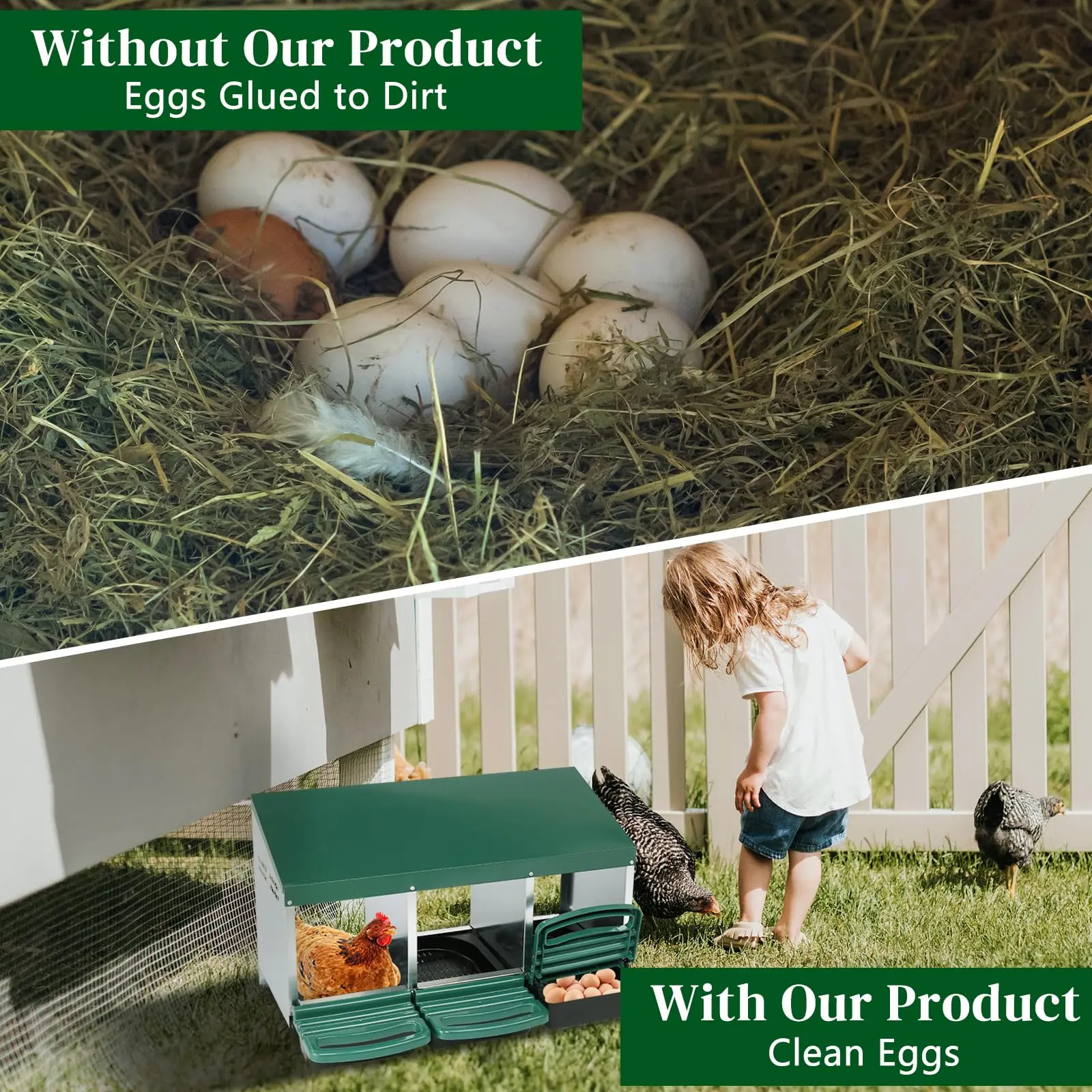 1. Hen-Friendly Design: Crafted to offer your chickens a secure and private environment that mimics their natural laying habitats, promoting a stress-free laying experience.