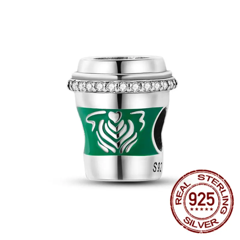 Crafted from premium 925 Sterling Silver with beautiful coffee art engraving, sparkling Zirconia and a smooth green enamel finish, this coffee cup pendant is a must-have for coffee lovers.