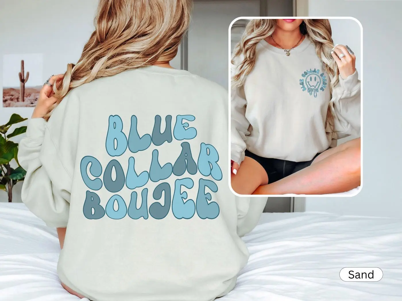 Blue Collar Wife Sweatshirt, Blue Collar Boujee Shirt, Blue Collar Lady, Wavy Retro Font, Girlfriend, Brat, Babe Gift