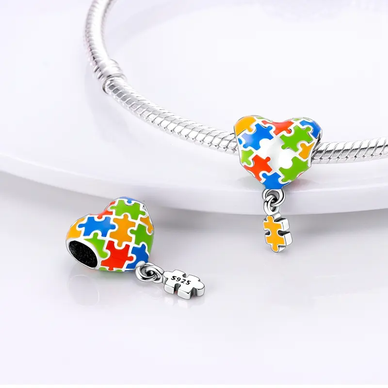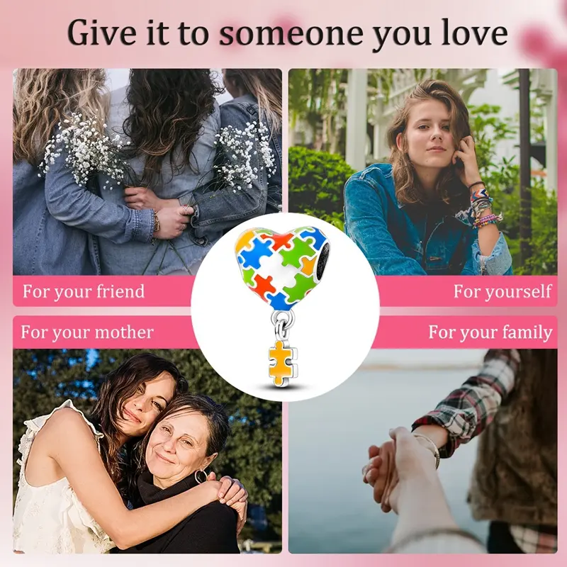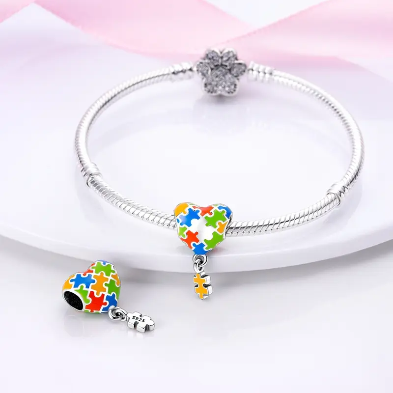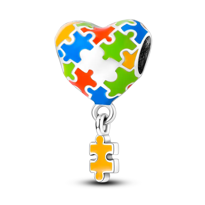 Crafted from premium 925 Silver-plated, this heart pendant features a colorful puzzle design, and the dangling puzzle pendant symbolizes love, unity, and uniqueness.