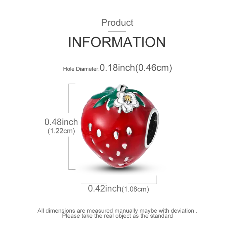 Crafted from premium 925 Sterling Silver, this strawberry charm features a vibrant red enamel finish, delicate floral details, and a sparkling gold zircon center, adding a playful and refreshing touch.
