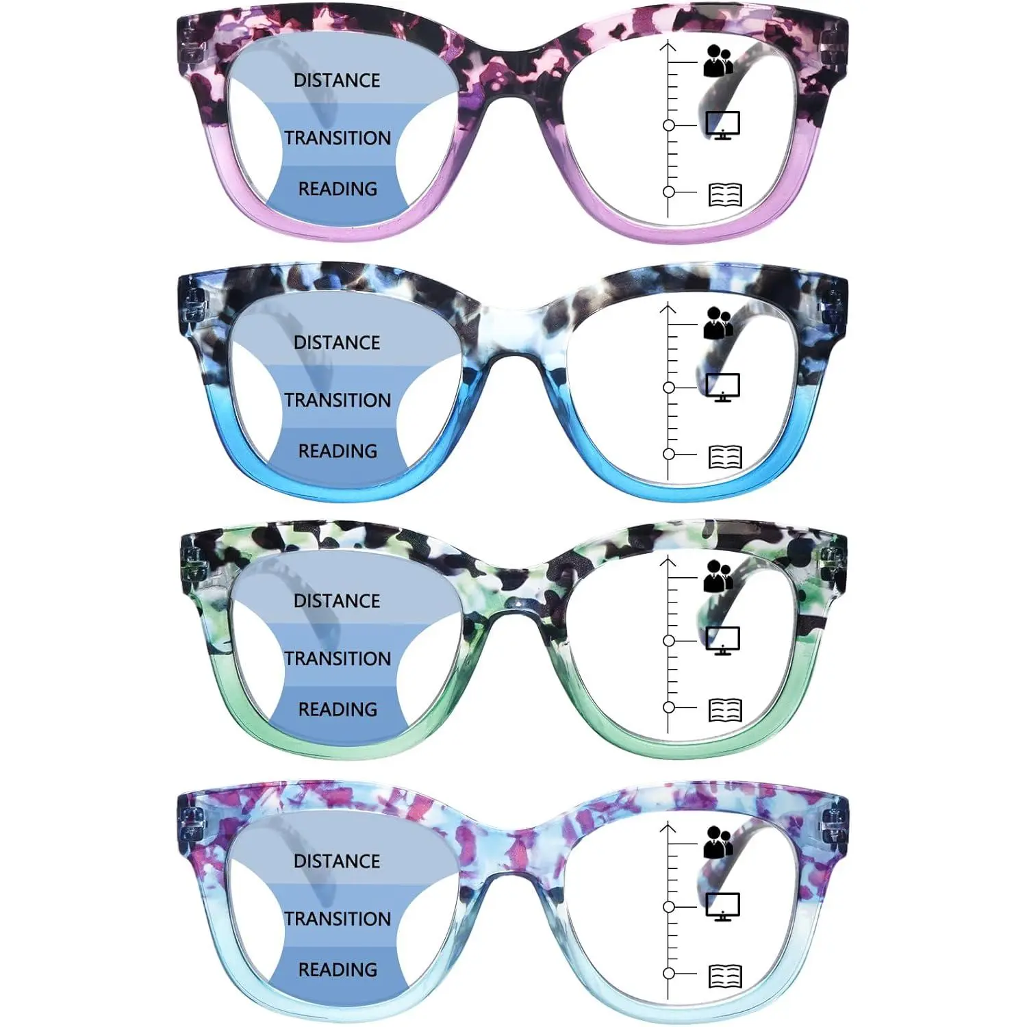 4 Pack Progressive Multifocus Reading Glasses for Women Blue Light Blocking Multifocal Readers with Spring Hinge
