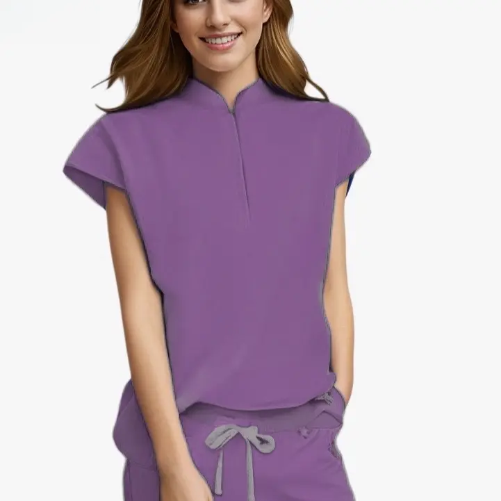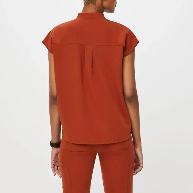 Introducing our Grace Collar Oversized Scrub Set for women, designed with incredibly soft fabric to offer unmatched comfort, function, and style, as well as odor protection. These stylish scrub sets are made with durable four-way stretch fabric that is moisture-wicking, anti-wrinkle, and exceptionally soft, providing ultimate comfort. The top comes with two deep welt hand pockets and one hidden interior security pocket, while the pants have four pockets for holding pens, highlighters, notepads, gum, lip balm, and other essentials. This scrub set also incorporates moisture-wicking and anti-wrinkle properties for odor protection, increasing its lifespan and durability. It features a flattering mandarin collar with hidden one-button placket and an oversized fit, offering style and professionalism without sacrificing comfort and function.