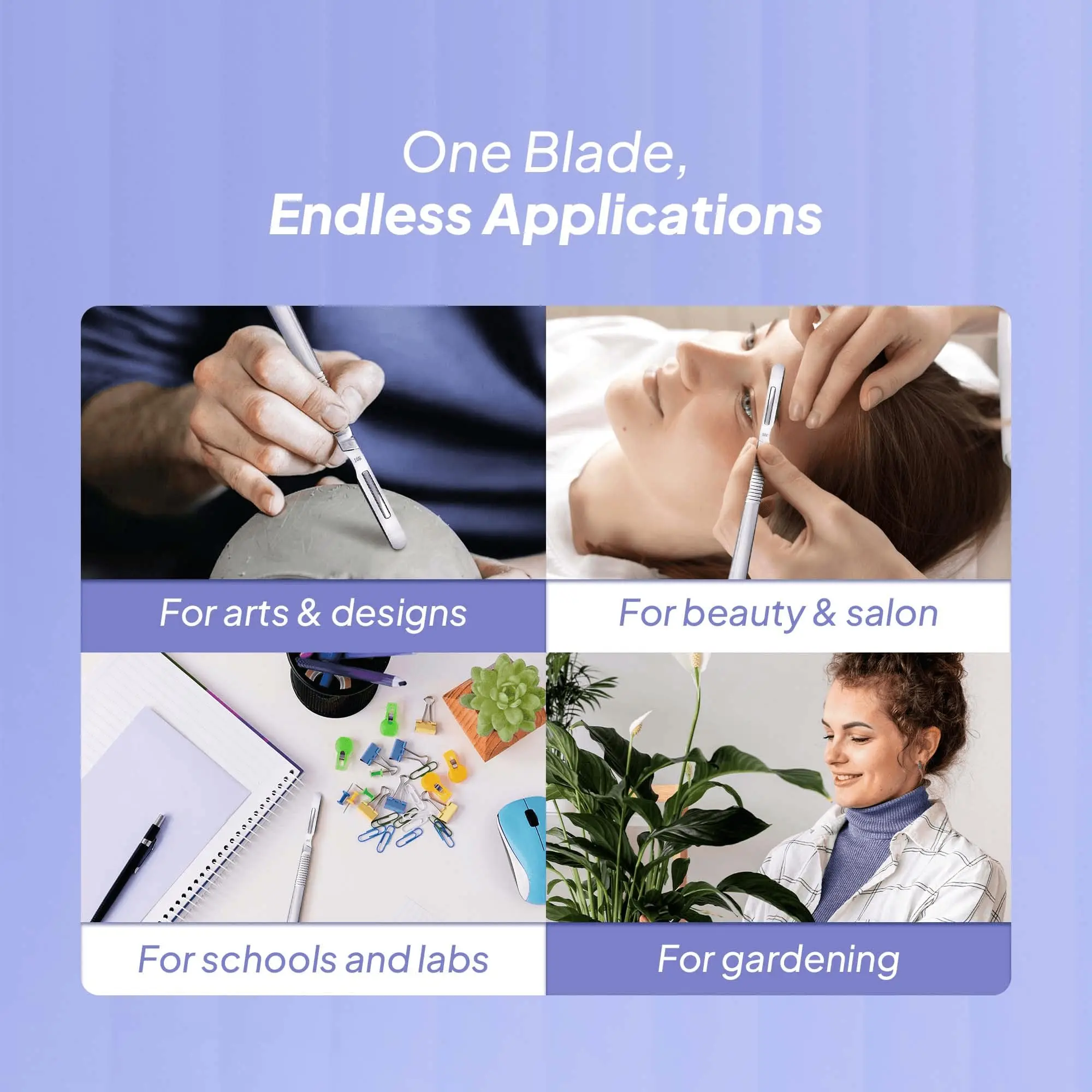 This product comes with a sturdy handle with sterile individually wrapped replaceable blades. I used these for my arts and crafts projects and they are sharp. I would highly recommend it.