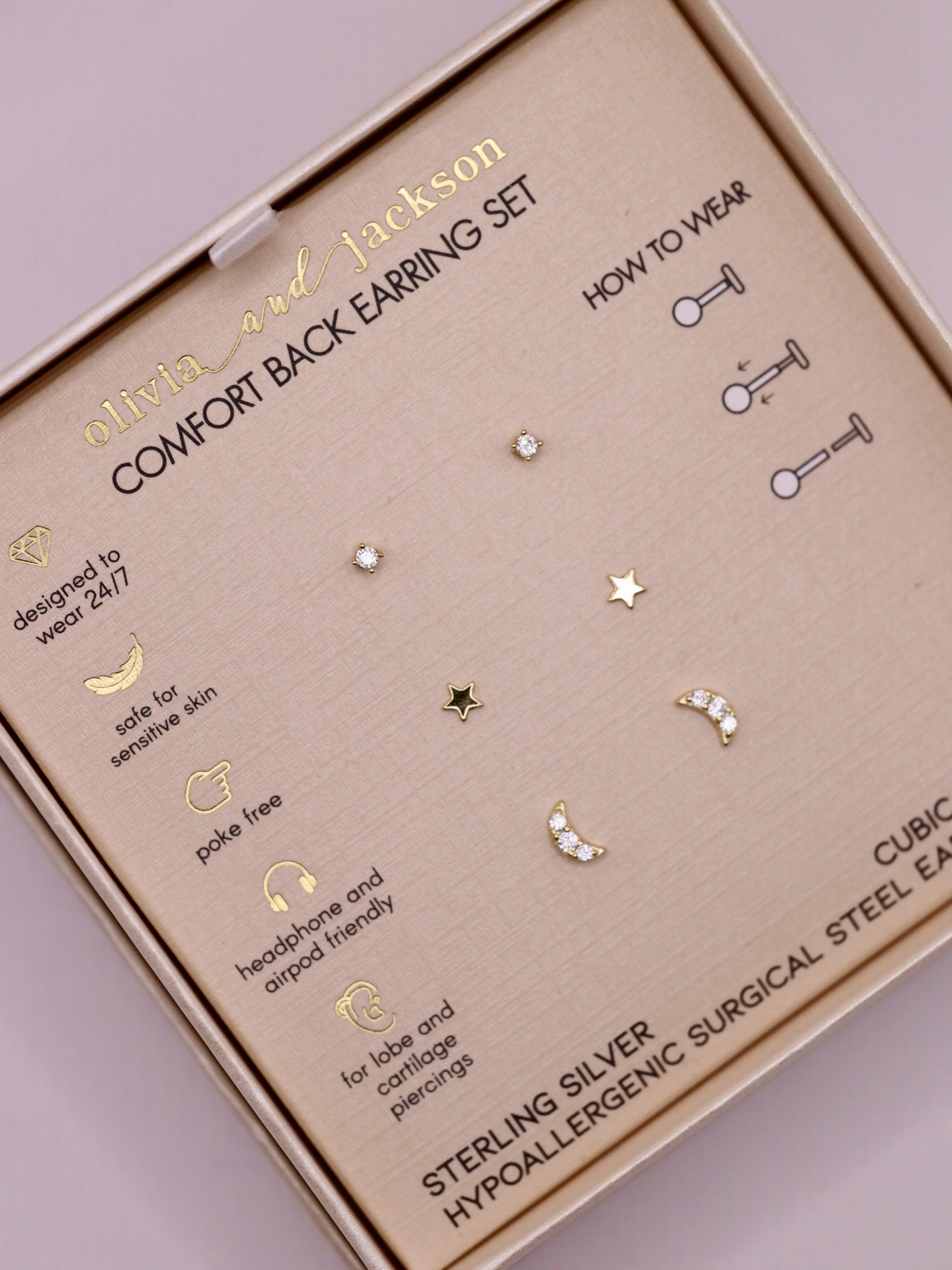 Give your ear a touch of sparkle with the Sterling Silver Gold Polished Star & Clear CZ Crescent Flatback Earring Set. Featuring comfortable flatback earring backs, polished gold stars, clear CZ stones, and crescent moon designs, these earrings are the perfect accessory for any ear stack.