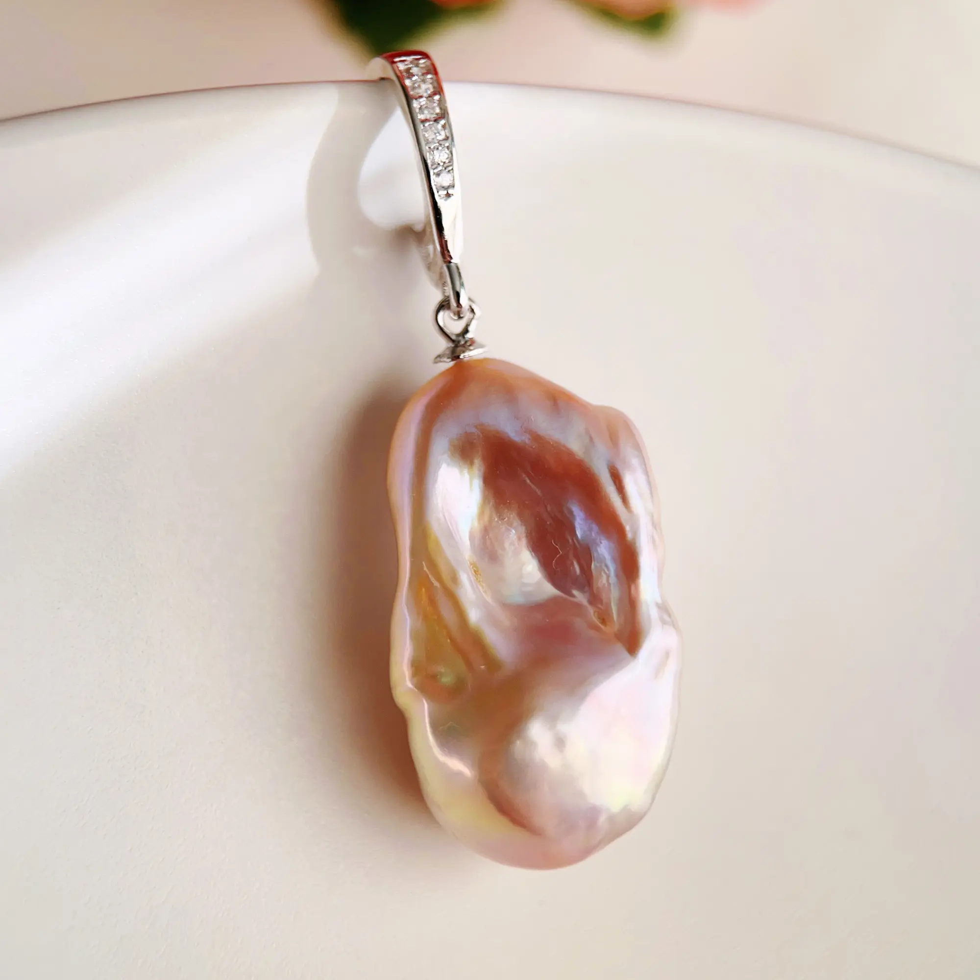 S925 Baroque Pearl Pendant with Universal Freshwater Pearl Pendant, Customized Sterilive Silver Pendant