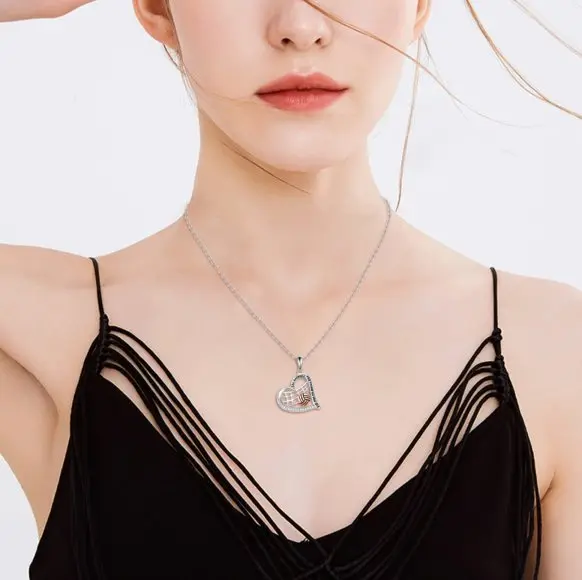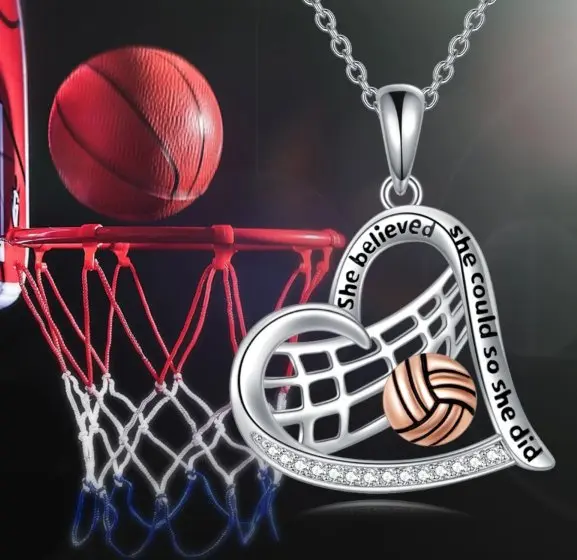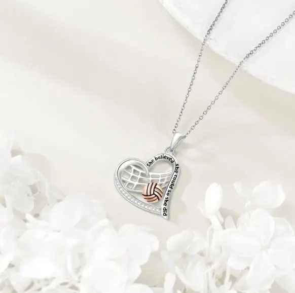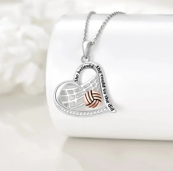 925 Sterling Silver Softball Volleyball Basketball Necklace Heart Pendant Sports Jewelry Gifts for Players Women