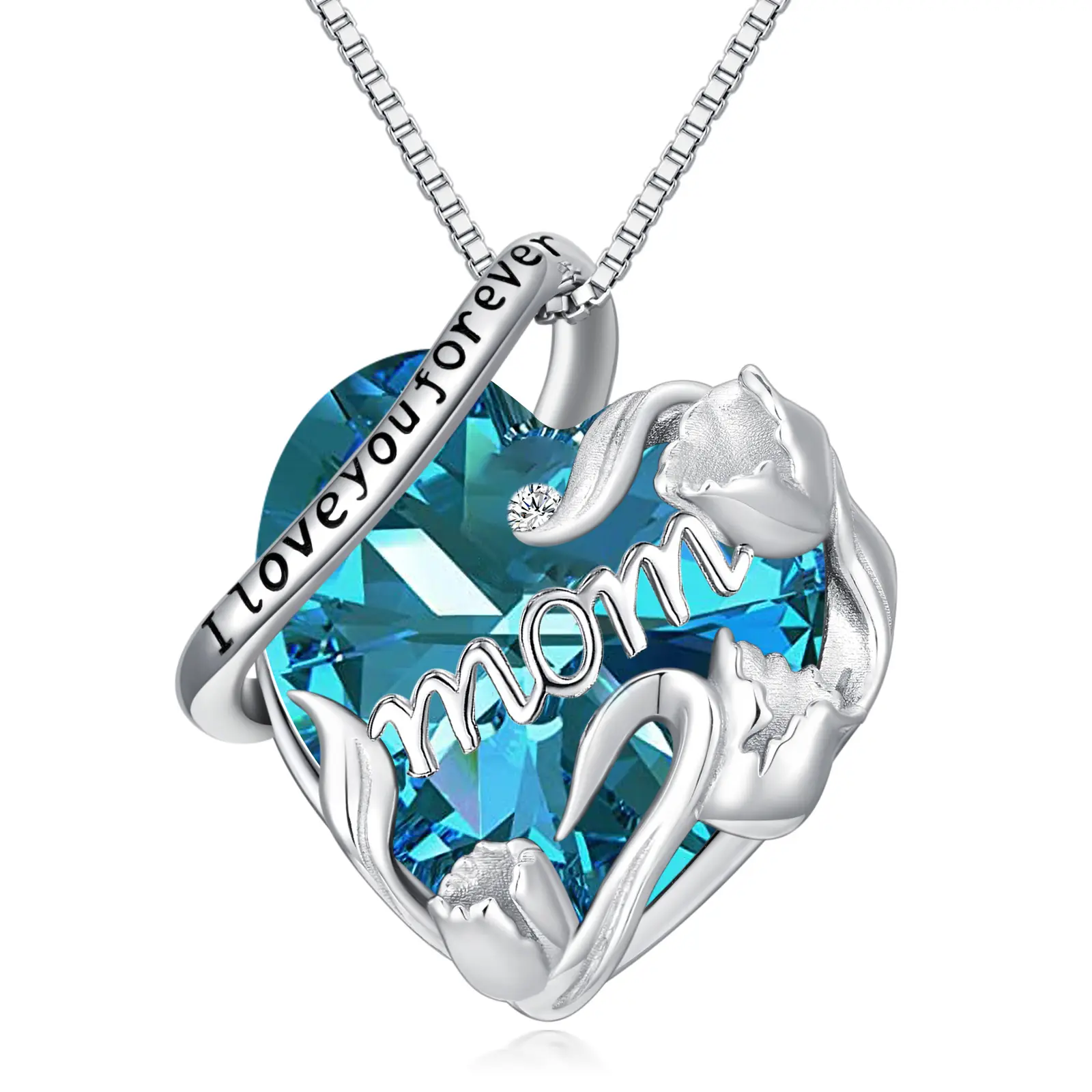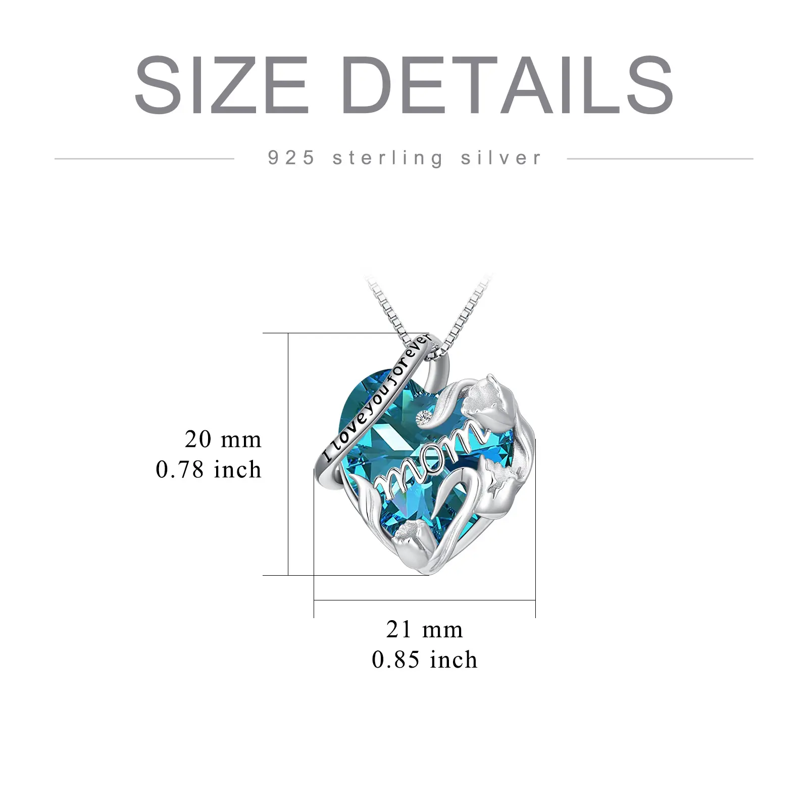 Delight Mom with the 925 Sterling Silver Heart Pendant Necklace adorned with Blue Crystal. A perfect jewelry gift, symbolizing eternal love with the message "I Love You Forever." Ideal for expressing heartfelt sentiments and adding a touch of elegance to her ensemble.