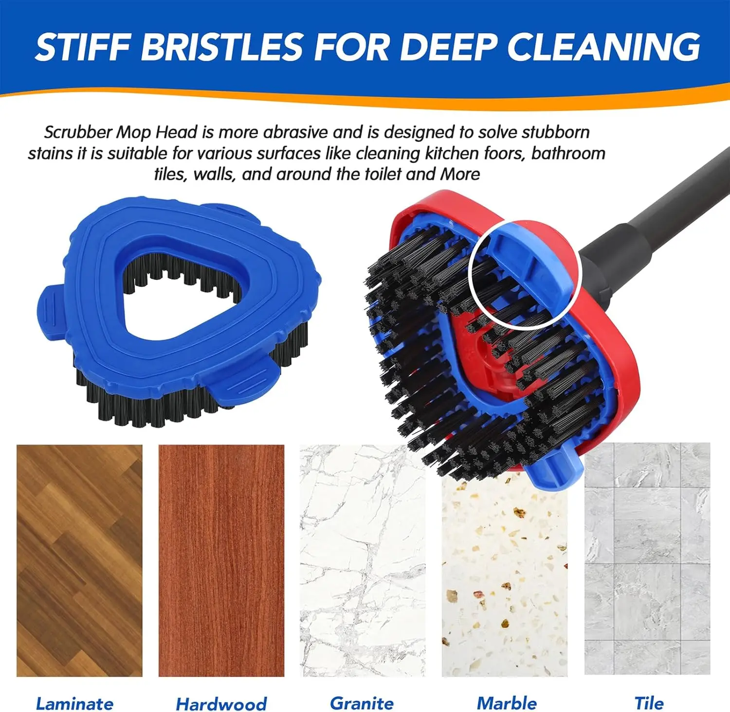 Heavy-Duty Scrubbing Power: Perfect for deep cleaning tasks, even in tight corners and hard-to-reach areas, turn your mop into a powerful scrubber with our patent-pending design brush head