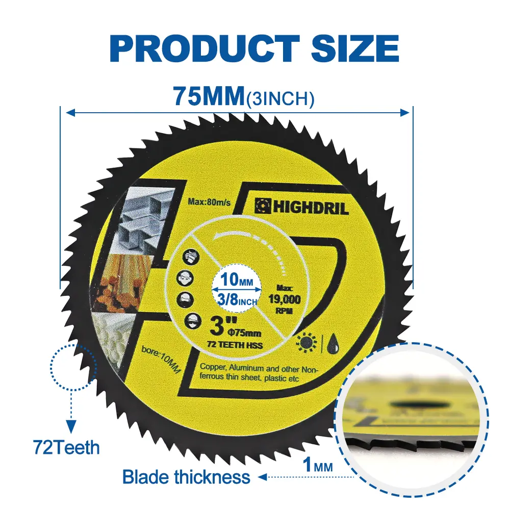 ·【Dimensions】3" x 0.04" x 3/8"(Metric Φ75 x 1.0 x 10mm). Diameter 3"(75MM), Thickness 0.04"(1.0MM), Bore 3/8"(10MM). Recommended RPM: 11000, MAX RPM: 19000.