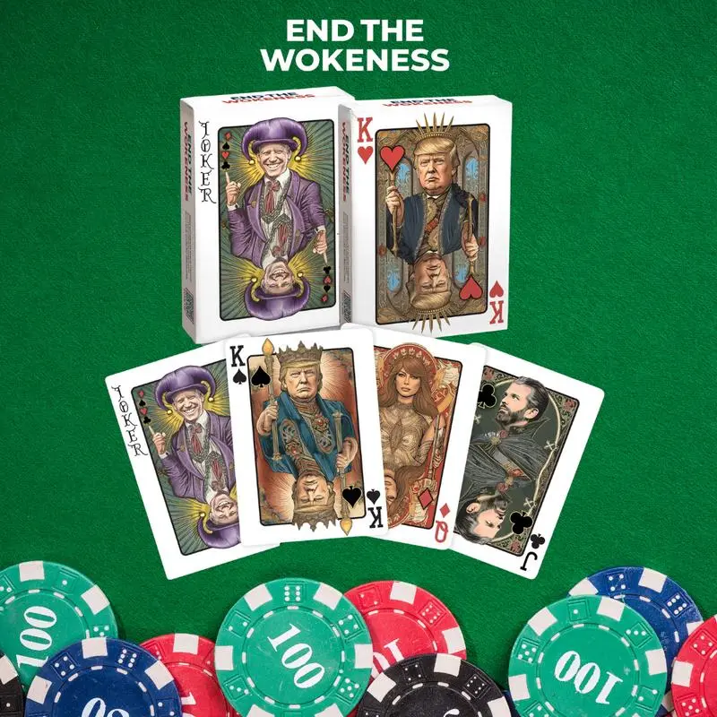 Presidential Theme: Features Trump, Melania, TrumpJr.. anda special Biden Joker card.FUN TRUMP POKER CARDS:compared with otherpoker cards, trump poker cards includetrump, melania.trump jr. and biden joker cards, bringing youa fun pokernight