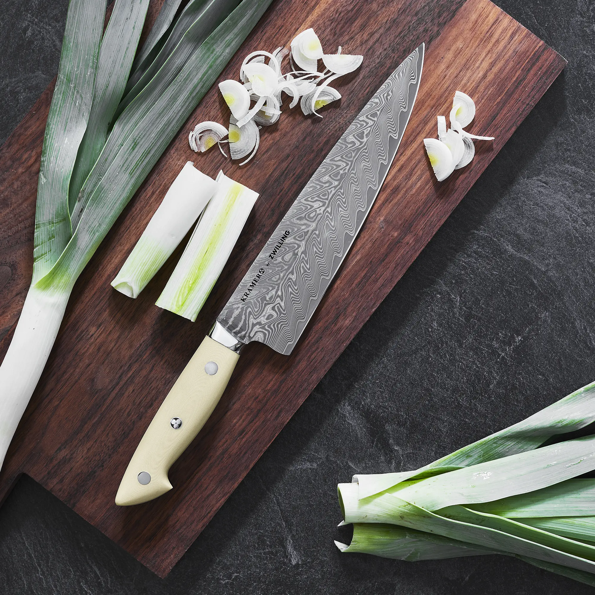 Boasting a smaller blade profile, these knives are perfect for smaller hands. The lighter weight provides increased nimbleness, ergonomics, and comfort while maintaining strength and balance. The white, linen micarta handle resists wear, even after prolonged use. And the signature decorative center pin is handcrafted by Bob Kramer. Contemporary and elegant, ZWILLING Bob Kramer knives are an indispensable addition to any kitchen.