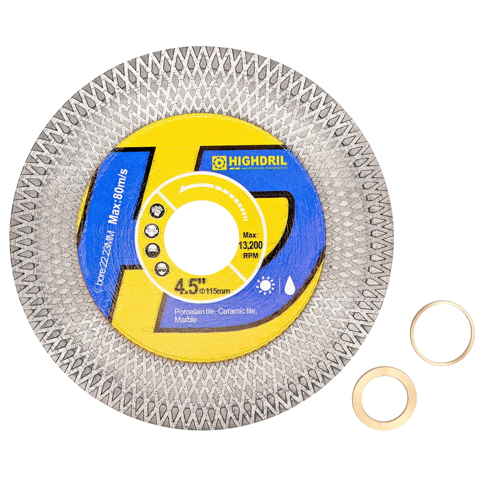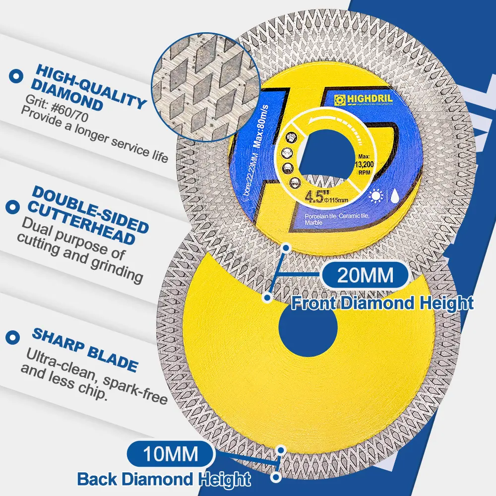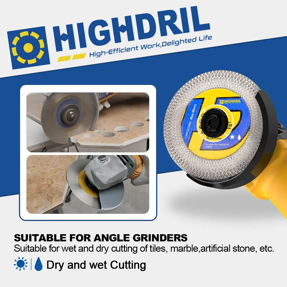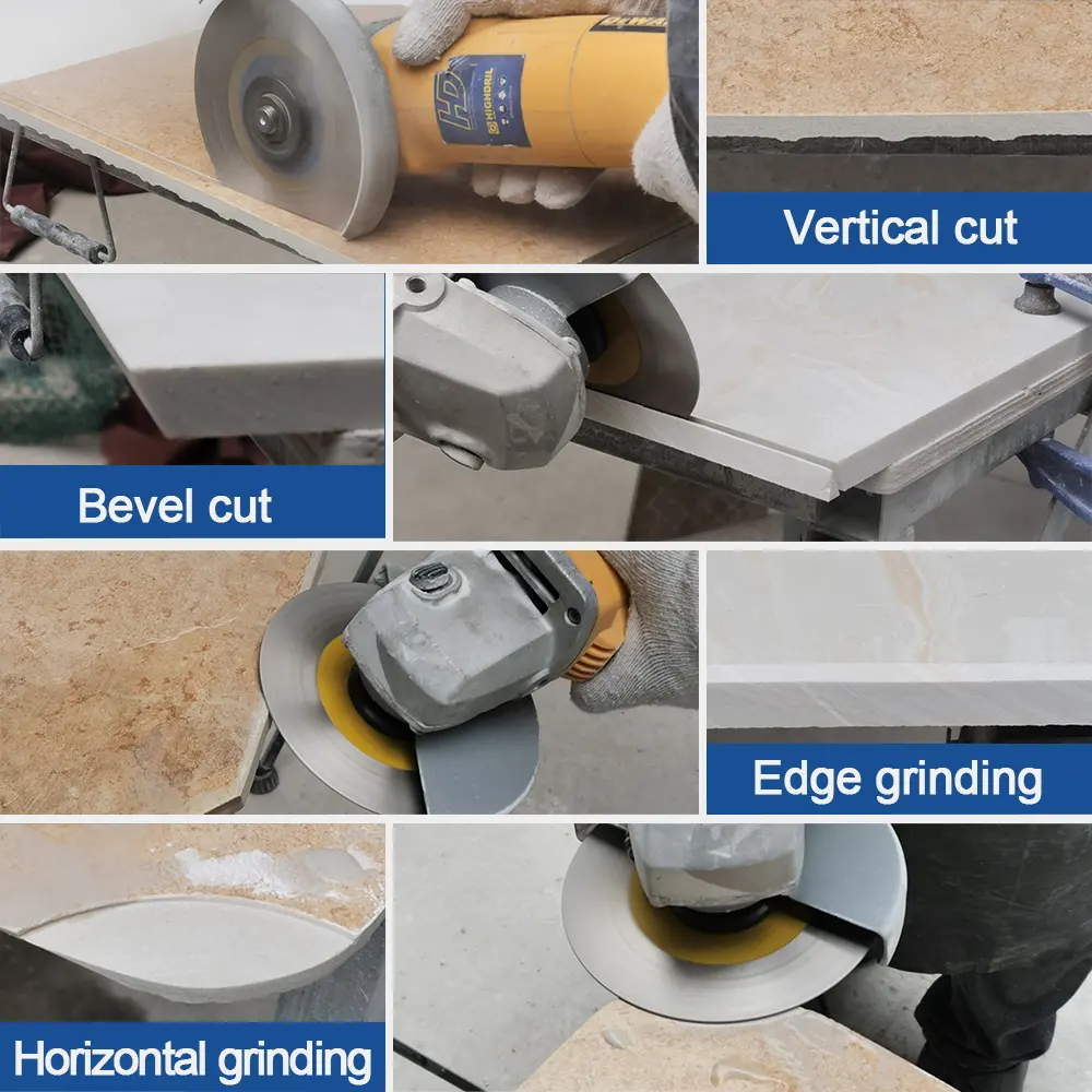 ·Dry/Wet Cut and Grind Ceramic,Tile,Marble,Artificial Stone, ultra-clean, spark-free and chip-free cuts;Machine:Angel grinder,Max RPM 13200