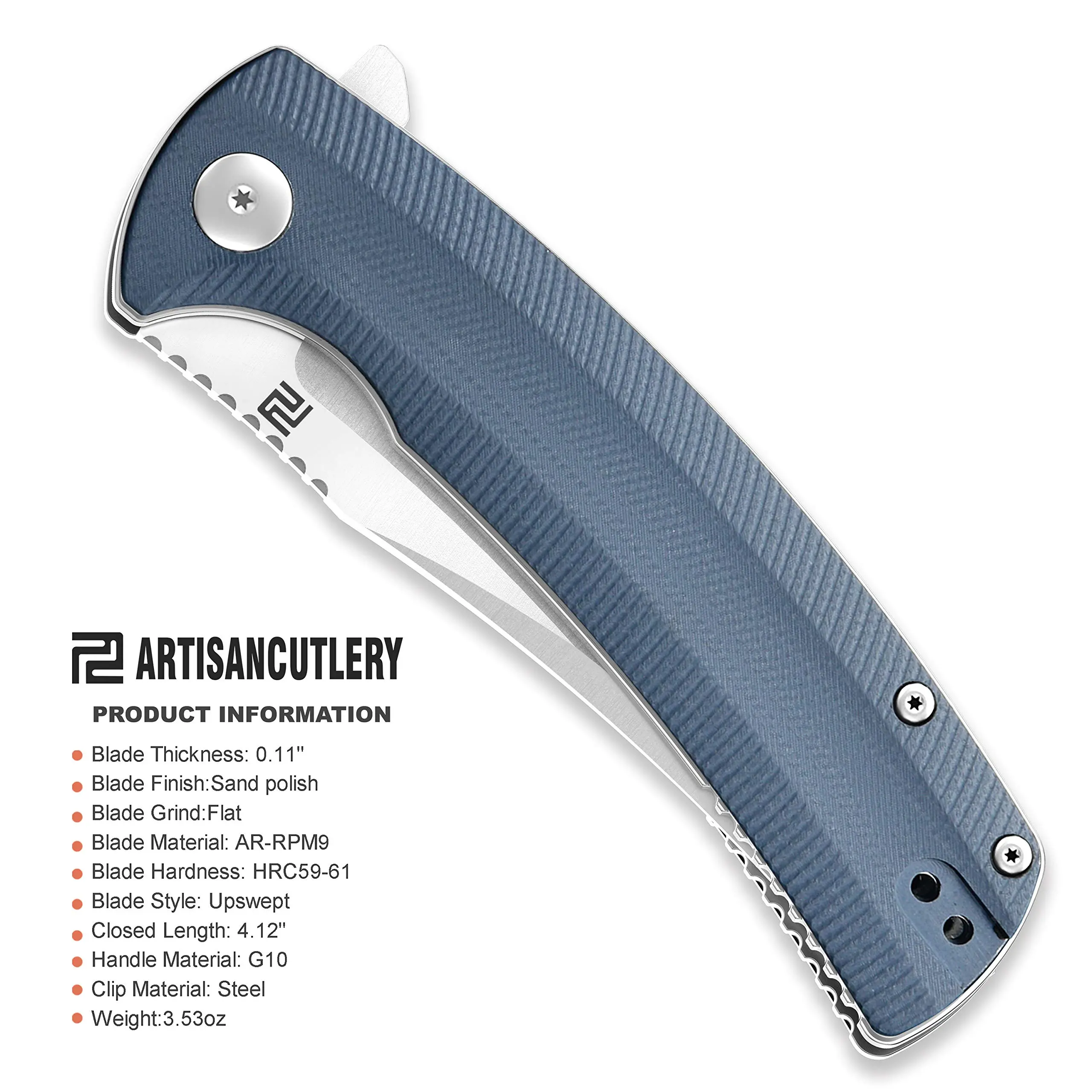 ·AR-RPM9 A NEW INNOVATIVE STEEL: Artisan Cutlery designed AR-RPM9 to meet the demanding needs of daily pocket knife users. With exceptional corrosion resistance, excellent edge retention, and easy maintenance AR-RPM9 is simply a cut above other steels.