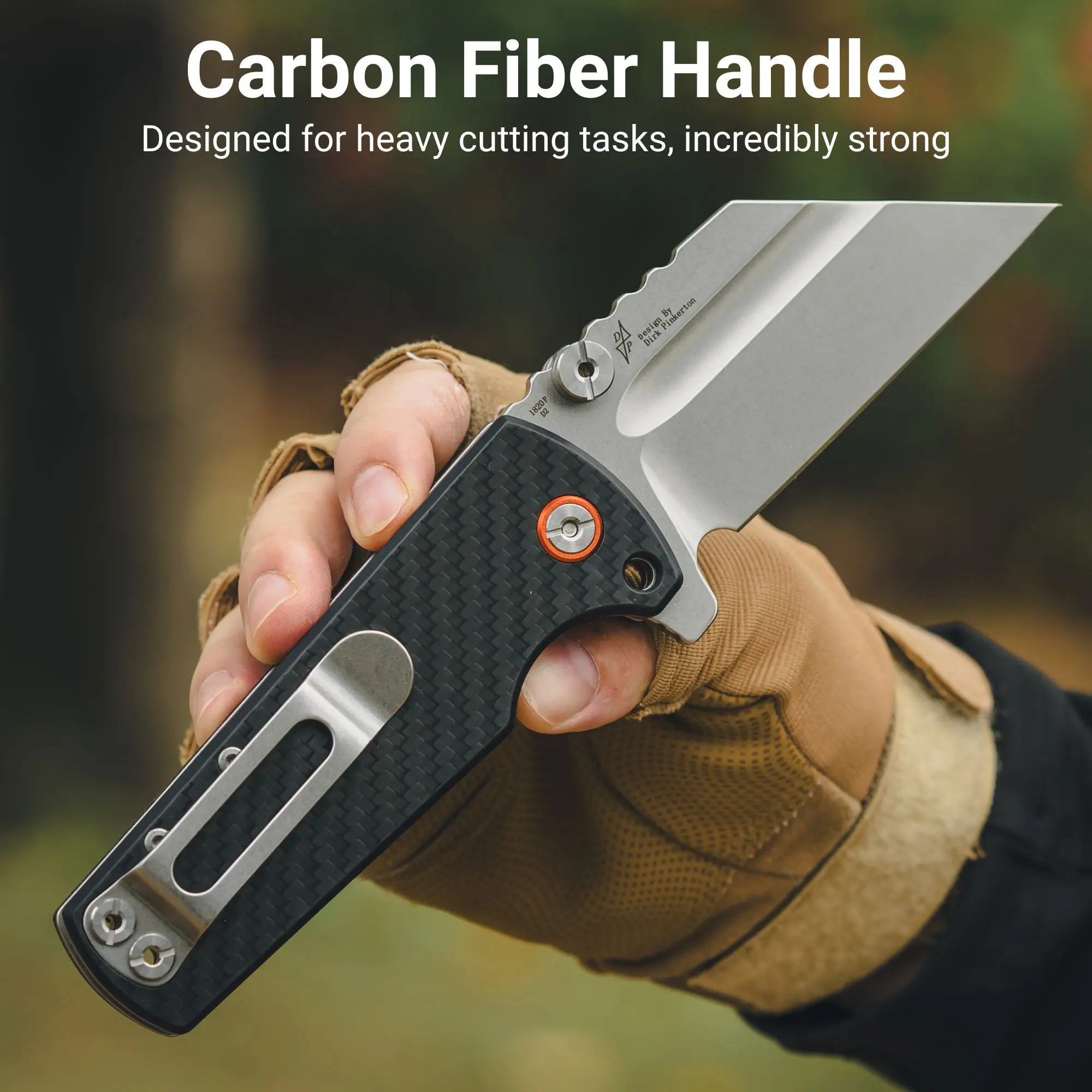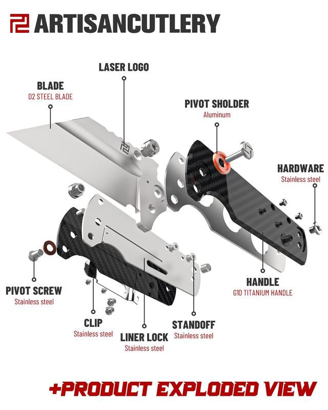 ·【CARBON FIBER HANDLE】TThe handle is crafted from lightly textured carbon fiber for a secure, non-slip grip. Its unique pattern enhances durability and safety. It was designed by renowned American designer Dirk Prikerton.