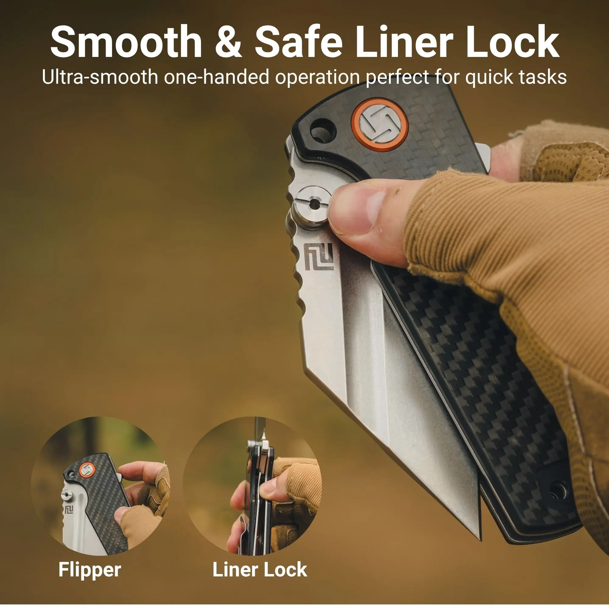 ·【Folding Pocket Knife to Fixed Knife】Equipped with a "Lock Pin," this knife can be secured in place, converting it into a fixed blade. Perfect for camping, outdoor adventures, and everyday use.