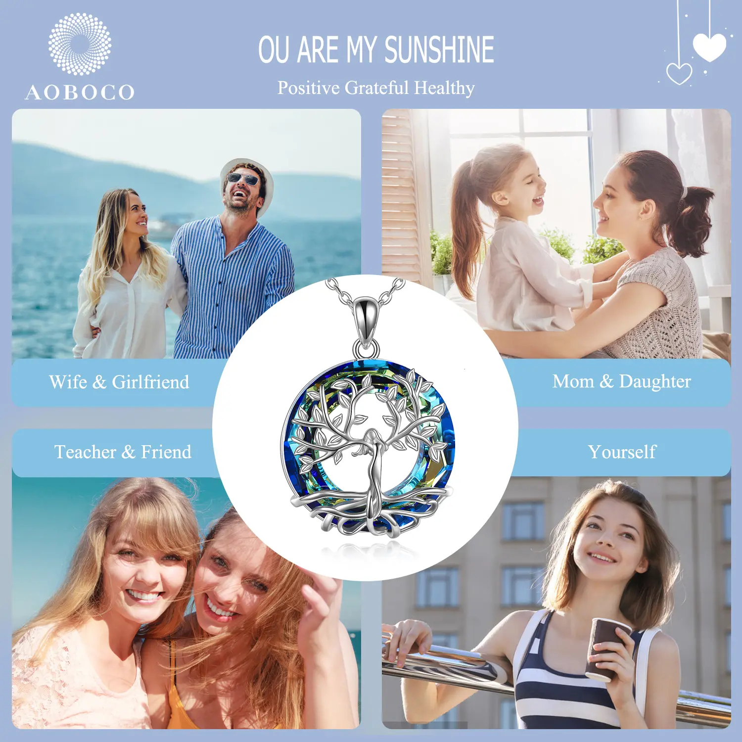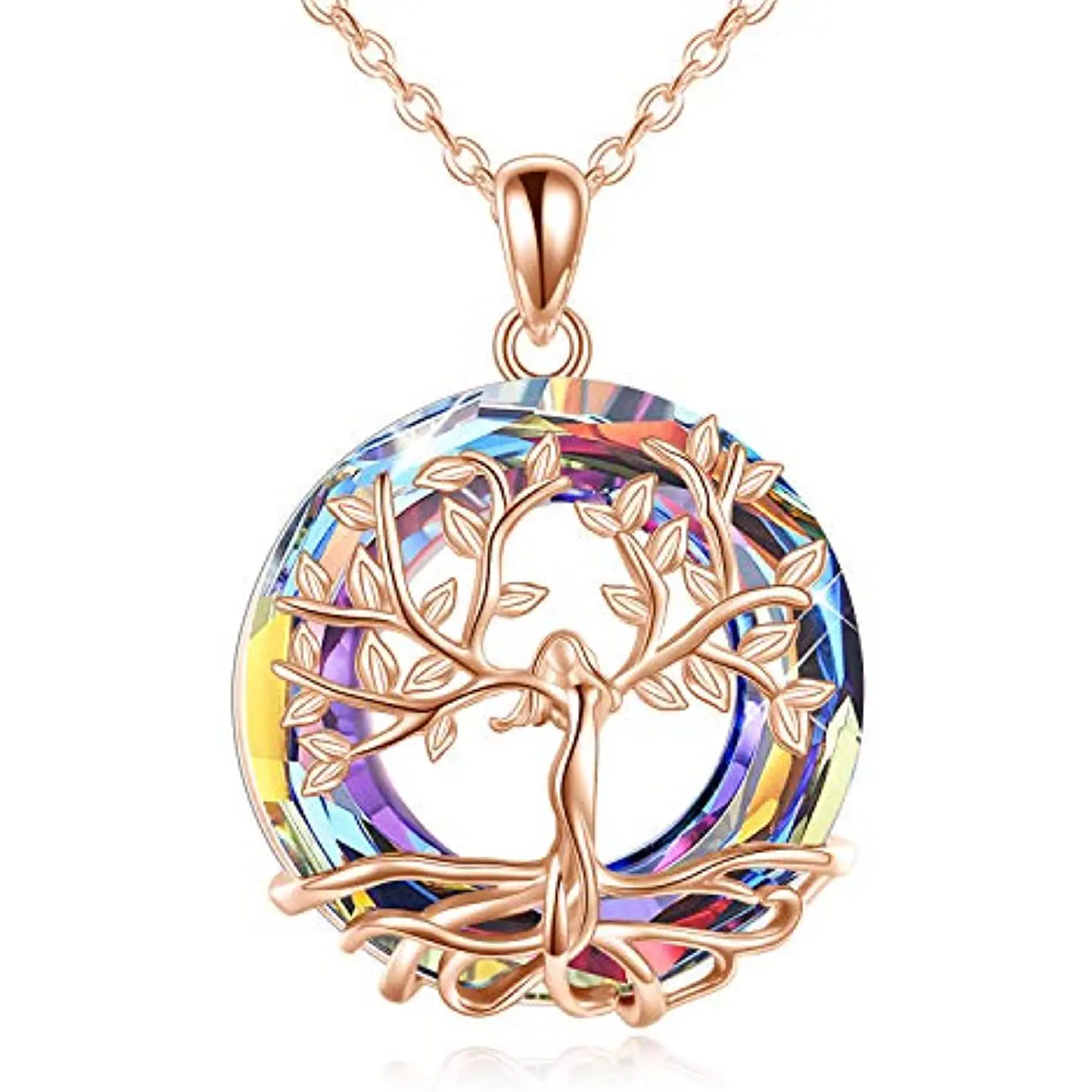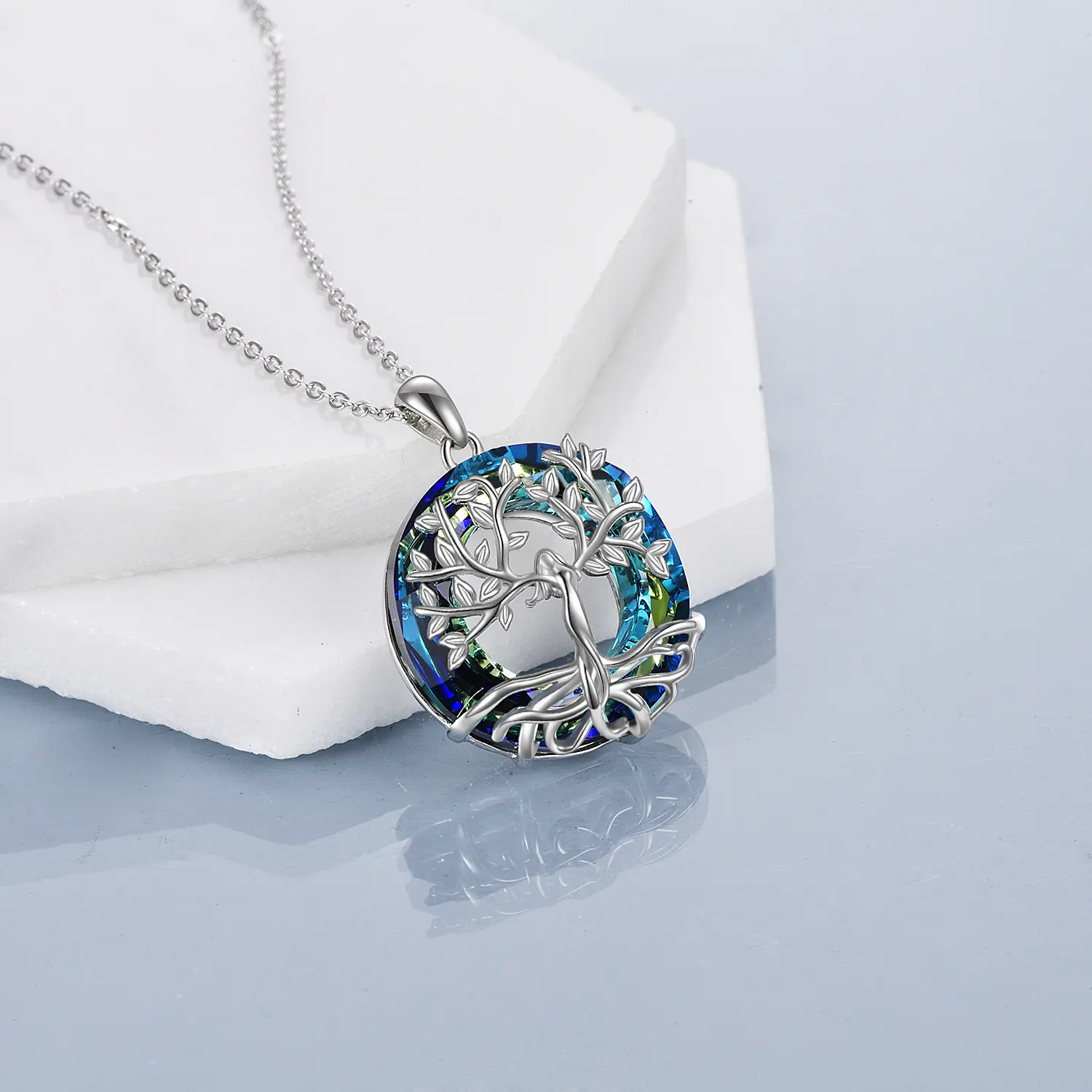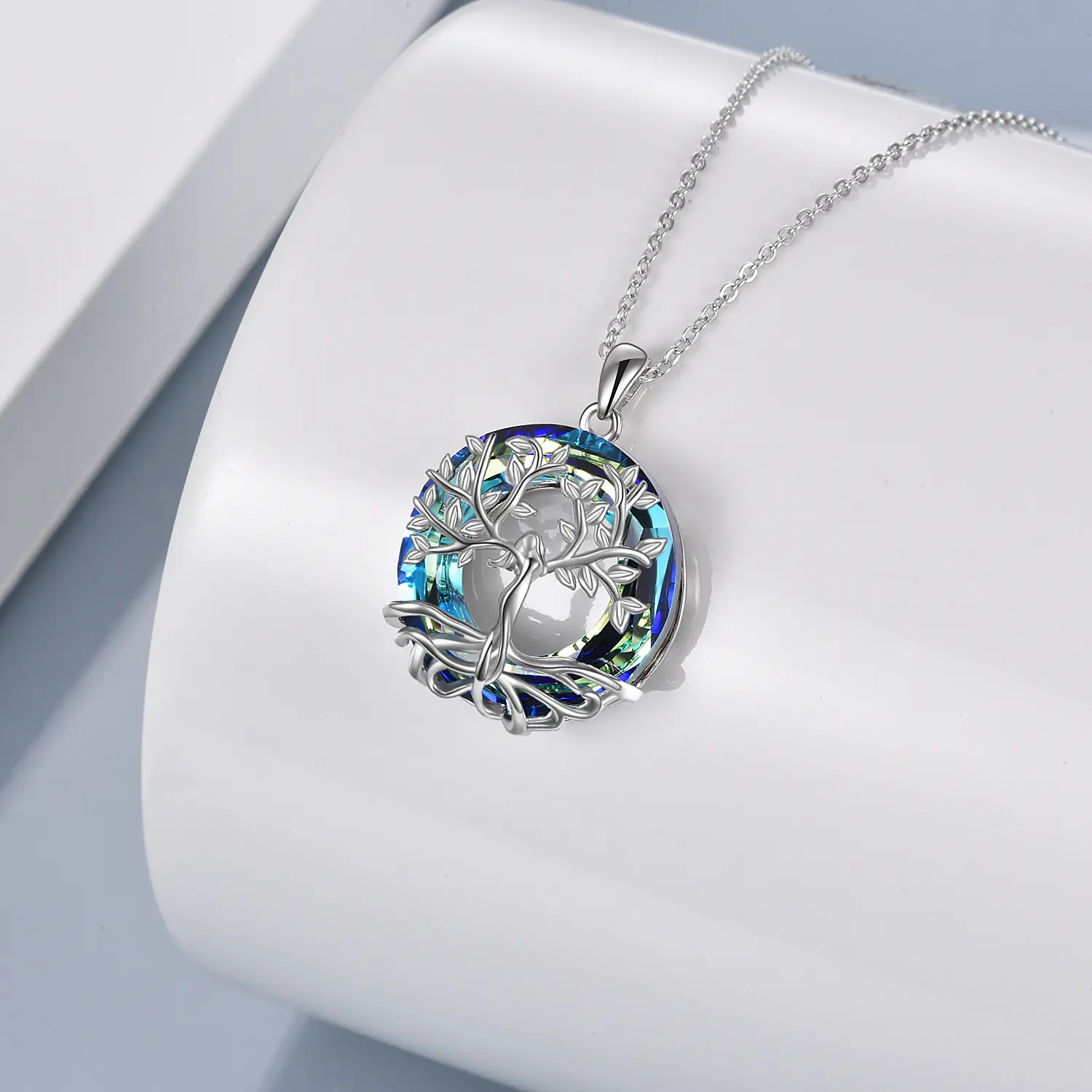 Tree of Life Pendant Necklace for Women with Crystal, 925 Sterling Silver Jewelry Gift for Mother's Day Gift, Meaningful Jewelry for Family