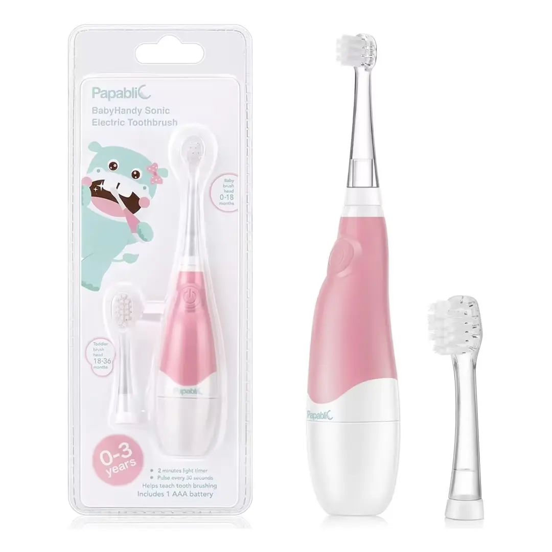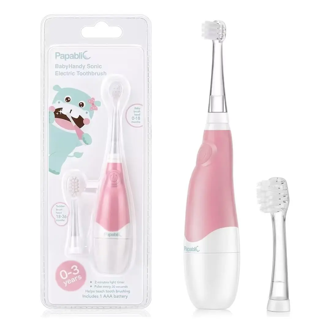 The Papablic Baby Electric Toothbrush is a perfect choice for toddlers aged 0-3 years. It features a 2-in-1 auto brush, FDA-approved silicone, and is dentist approved. It helps stop bedtime fights and comes with an AAA battery. Ideal for toddler teeth care. 🌟