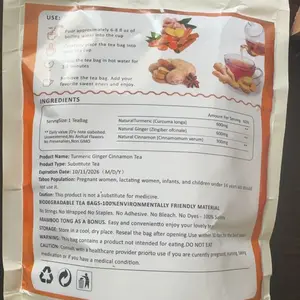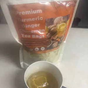 Elevate your tea experience with our Premium Turmeric Ginger Cinnamon Tea Bags. This 120-count pack offers a blend of 100% natural ingredients, crafted into a handmade vegan Chinese herbal mix. Each bag is free from additives, sugar, gluten, and caffeine, ensuring a pure, natural beverage. Perfect for those seeking authentic, unadulterated tea.