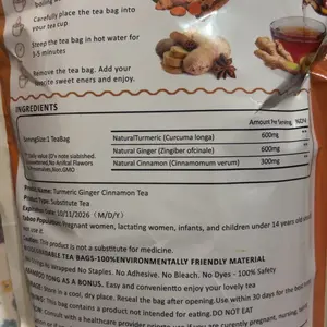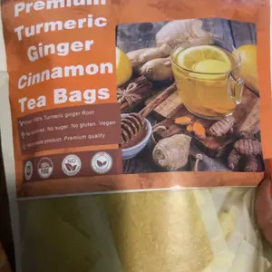 Elevate your tea experience with our Premium Turmeric Ginger Cinnamon Tea Bags. This 120-count pack offers a blend of 100% natural ingredients, crafted into a handmade vegan Chinese herbal mix. Each bag is free from additives, sugar, gluten, and caffeine, ensuring a pure, natural beverage. Perfect for those seeking authentic, unadulterated tea.