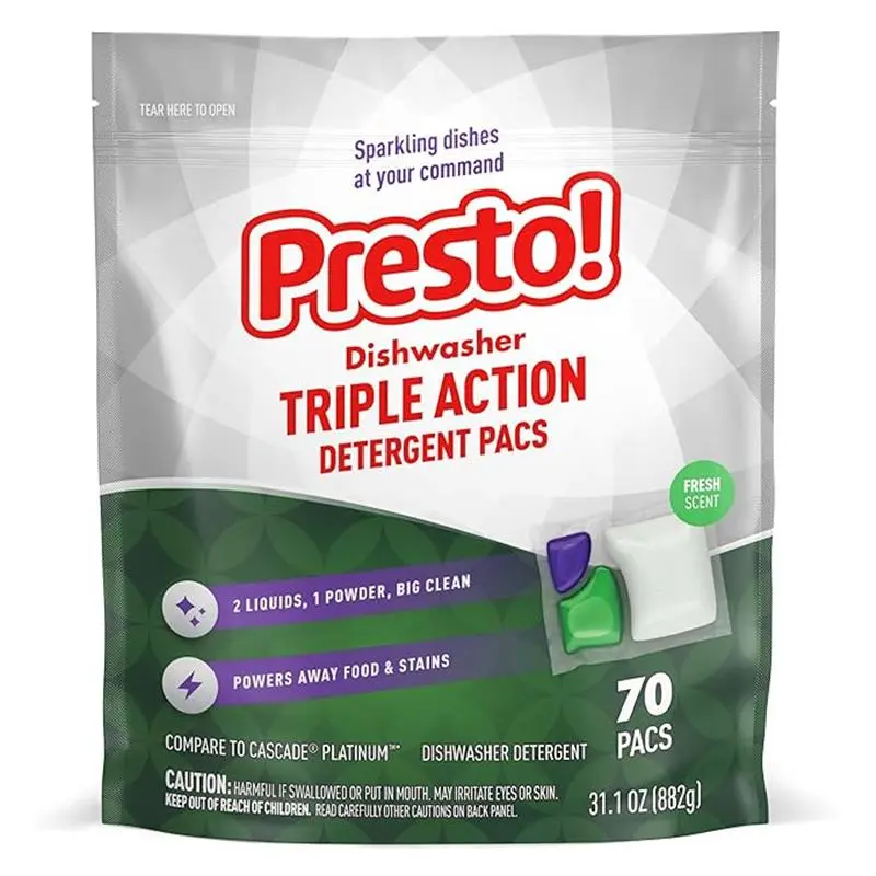 Triple Action Dishwasher Pacs, Anti-spotting, Fresh Scent, 70 Count