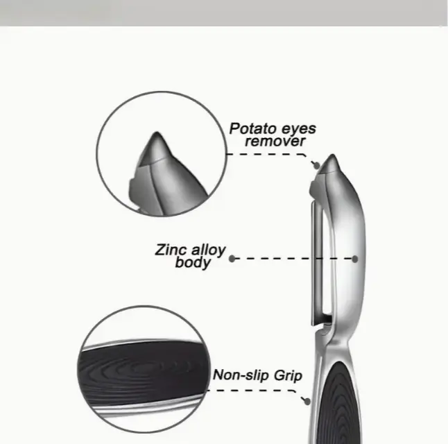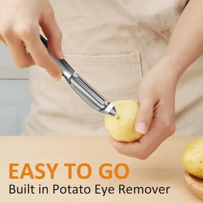 ·Design: Includes two peelers: one with a straight blade and one with a built-in eye remover.
