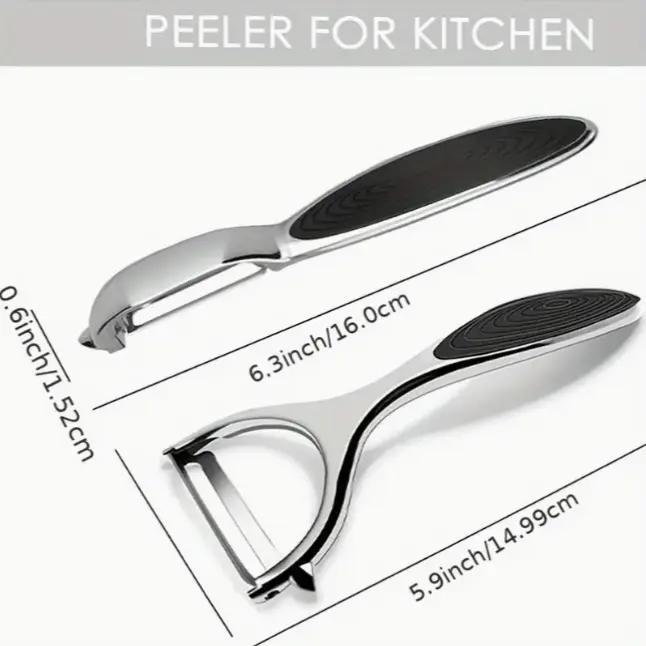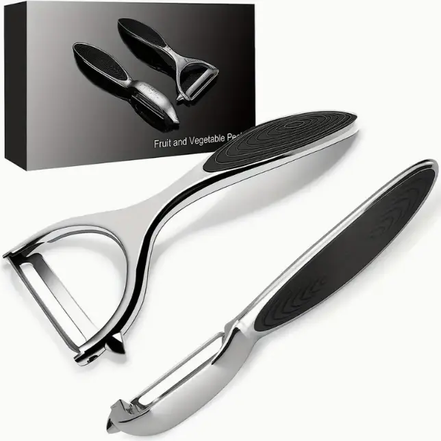 This premium 2-piece stainless steel vegetable peeler set is designed for faster, easier, and more efficient meal prep. Made from food-grade stainless steel, the peelers resist rust and ensure long-term durability. The set includes two peelers: one with a straight blade for smooth peeling and another with a built-in eye remover.