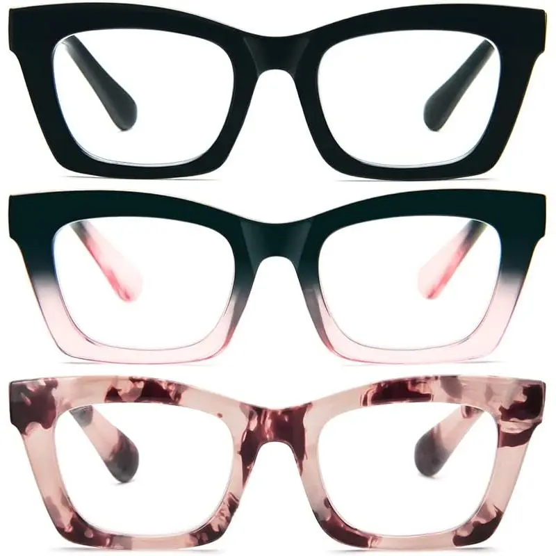 Lady‘s Stylish Reading Glasses: Beautifully crafted reading glasses for people who loves fashion.The Trendy design of the large and square rims is suitable for all face shapes.Whether you're walking down the street, work, or read, this design will make you more attractive.