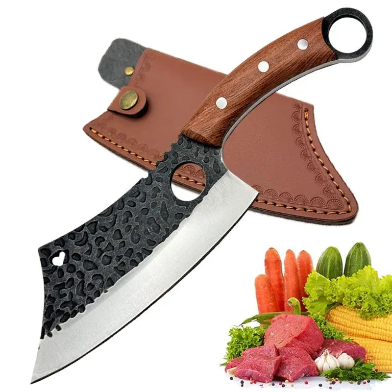 Premium Stainless Steel Forging Meat Cleaver and Bone Knife, Wooden Handle, Ideal for Home Cooking, Camping, BBQ, Festival Use, Stainless Steel Knives