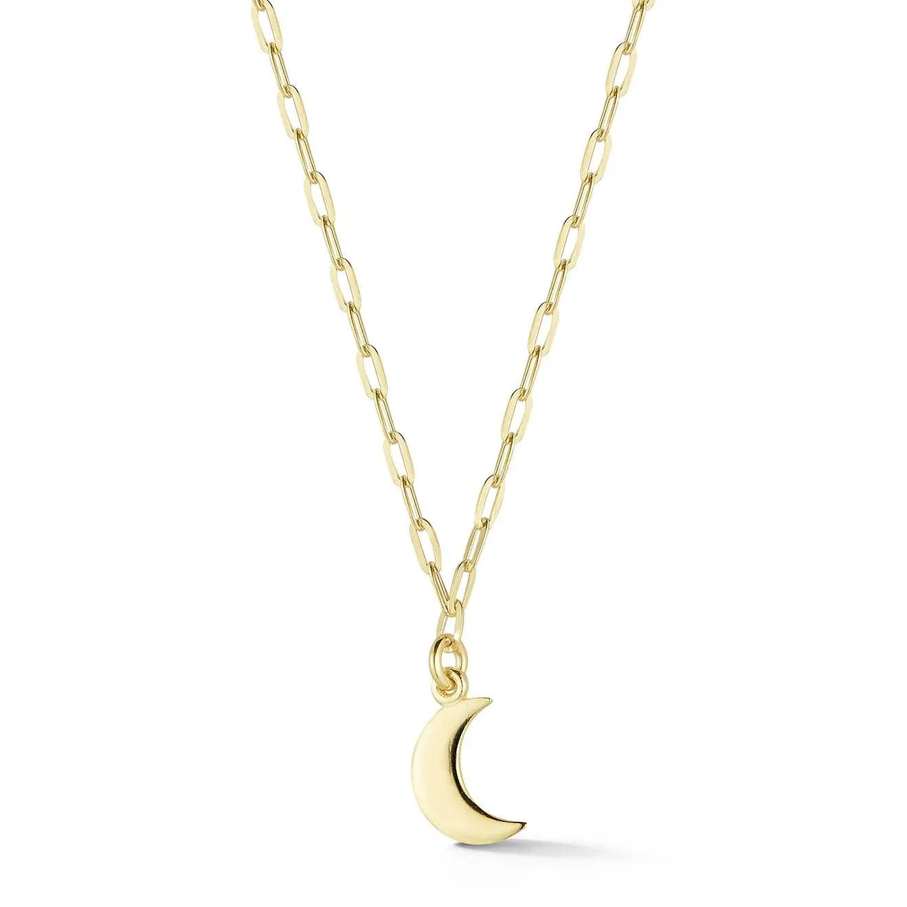 A perfectly minimalistic and delicate Tiny Crescent Moon Necklace to show off any day, anywhere! Dangling on a smooth paperclip chain, this polished crescent moon pendant is a reminder that even in the darkness, you can still shine. Wear this necklace solo, or layered with chains for a bigger look.