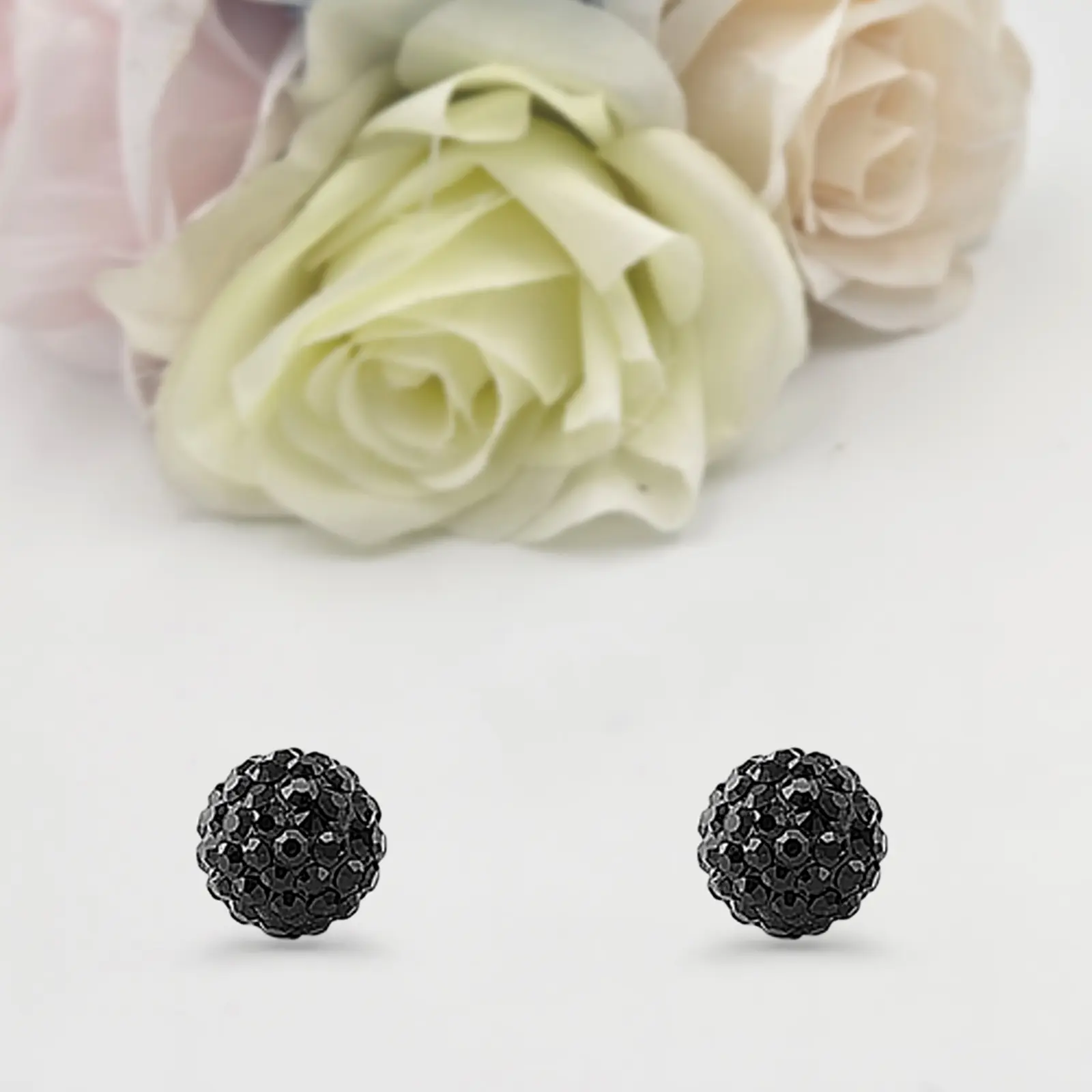 8mm Full Ball Stud Earring Push Back Black CZ 925 Sterling Silver Women Round Earring
