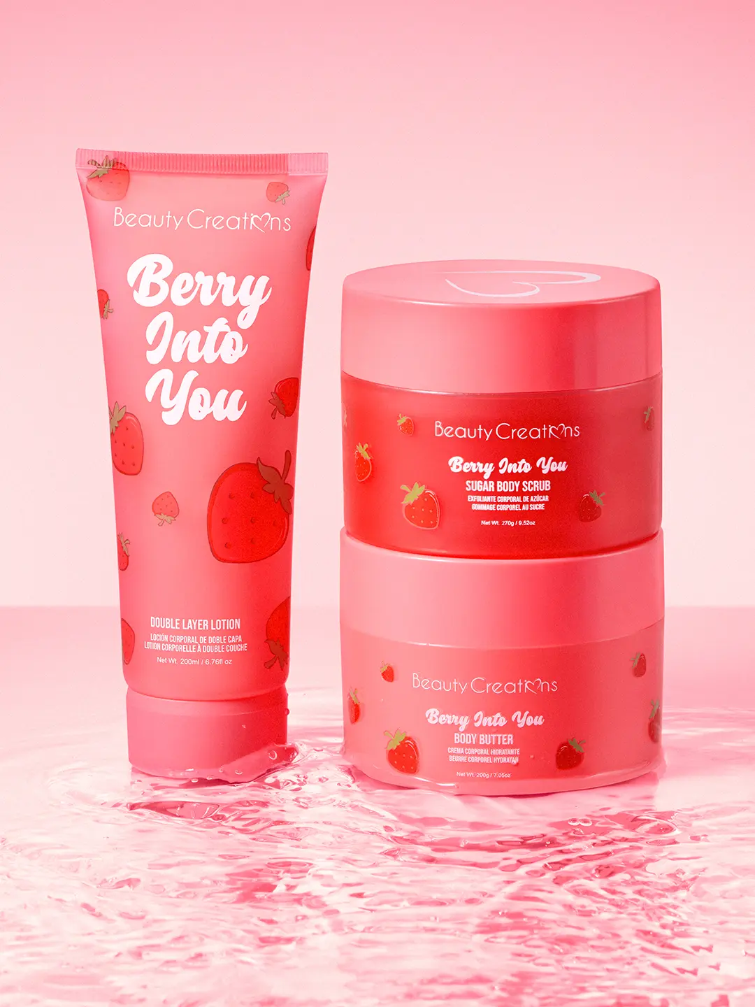 Beauty Creations Sweet Dose Body Bundle, Nourishing 3-Piece Berry-Strawberry Scent Bath & Body Care Set