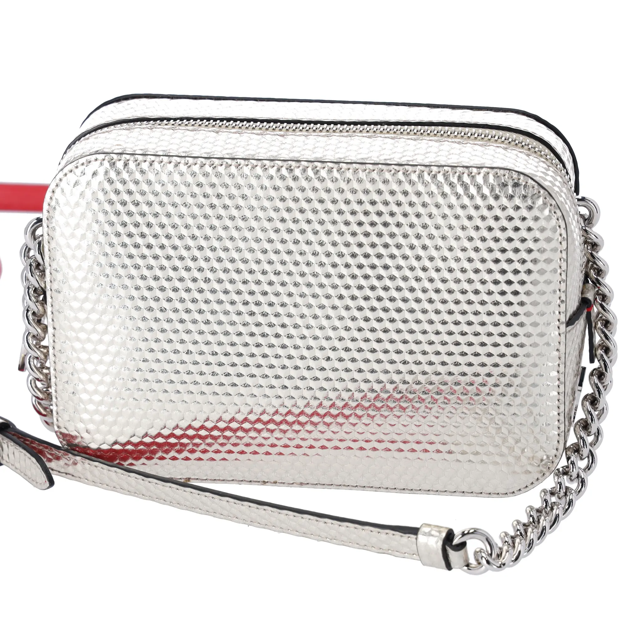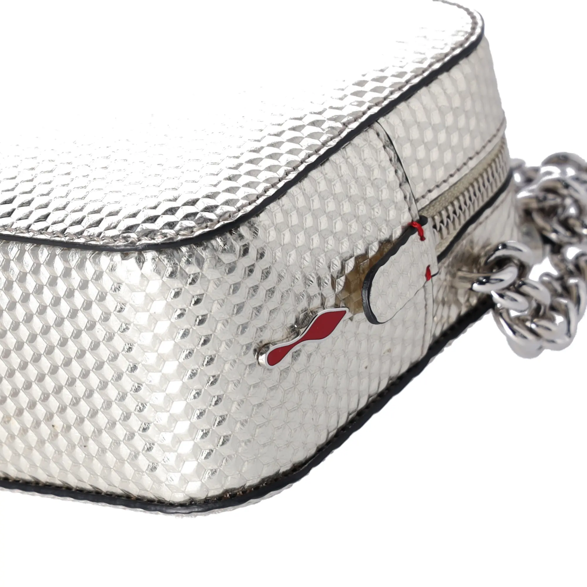 Pre-owned christian louboutin Leather Crossbody Bags Rubylou Mini Shoulder Bag Silver Glitter Classic Camera Bag