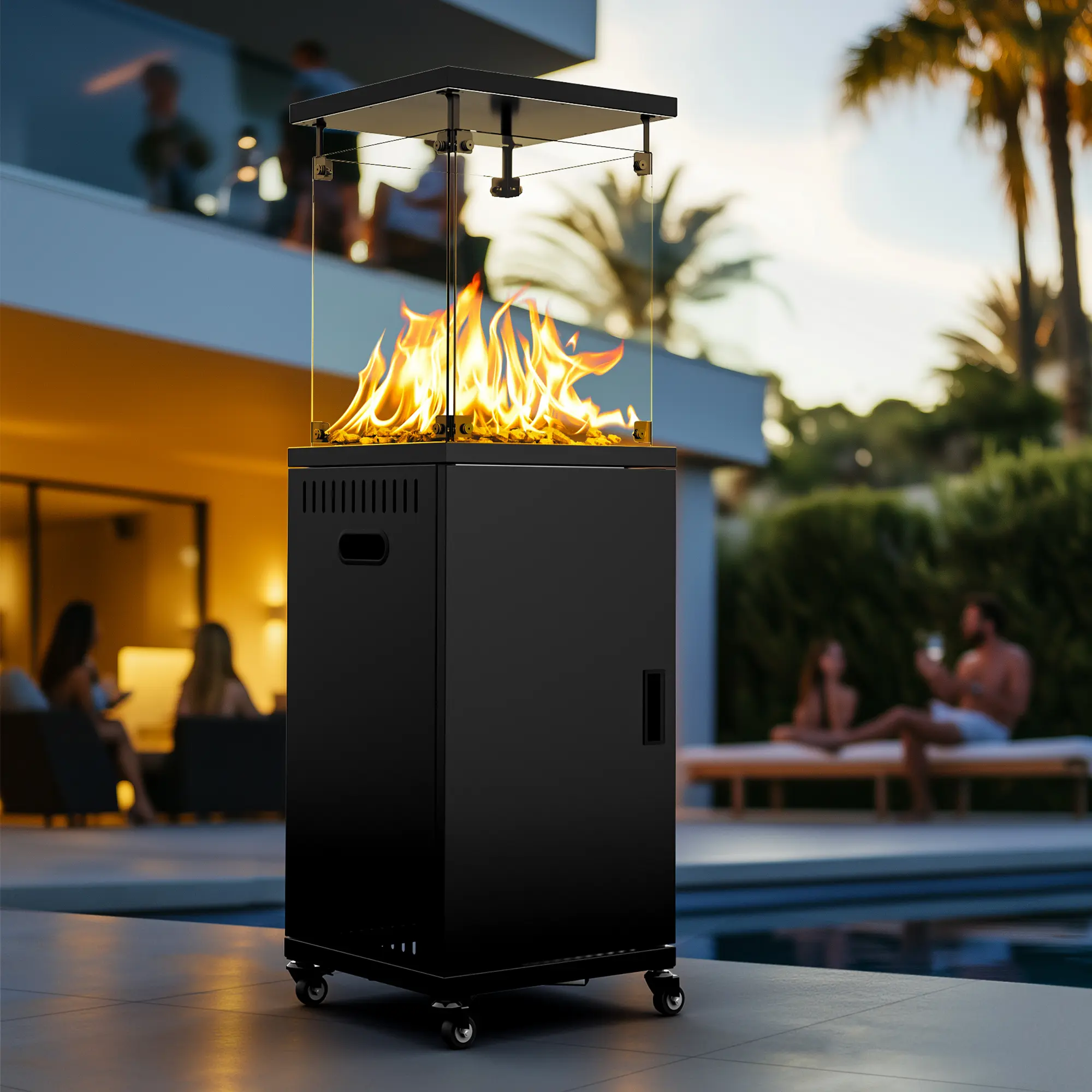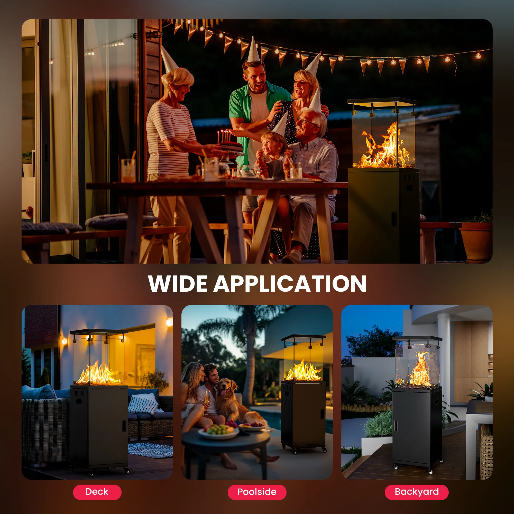 ·【Wide Application】The outdoor heater not only provides warmth but also serves as an elegant centerpiece for your outdoor gatherings. Enjoy the charm of 360° flame visibility through the clear glass panel. The soft golden flames will illuminate your patio, garden, deck, porch, and highlight any area you like. Plus, our outdoor heaters come with a user manual for easy assembly and operation.