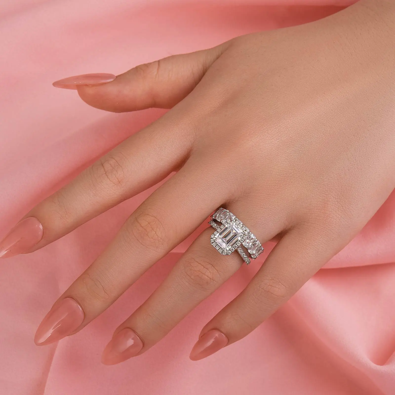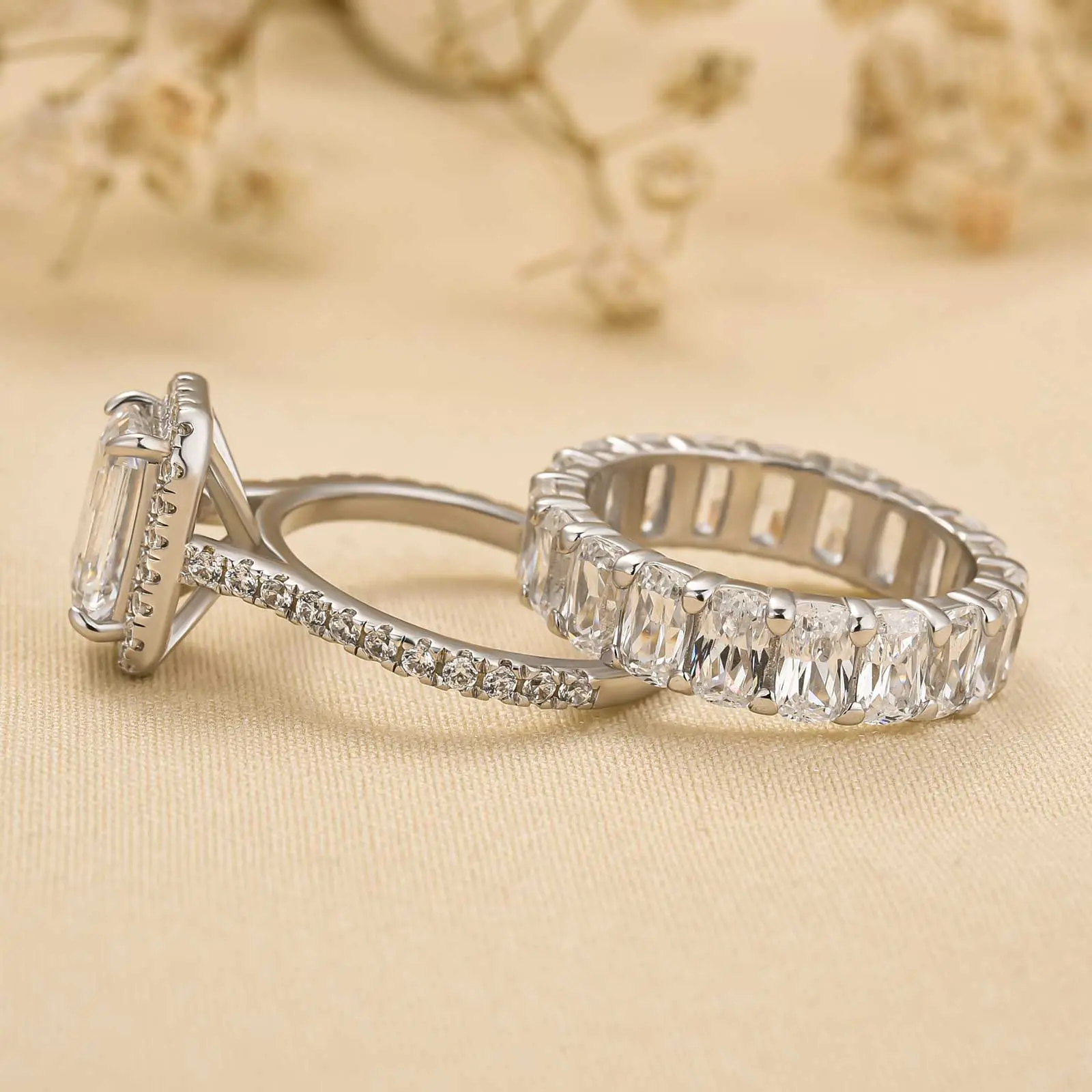 Louily Jewelry 2.5ct Rectangle Cut Engagement Ring Set, 5A Cubic Zirconia 925 Sterling Silver Classic Wedding Ring Set