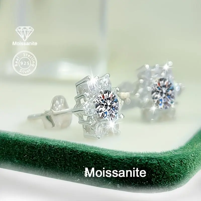 S925 Silver 1-Carat White Moissanite Women'S Snowflake Earrings, Perfect For Birthdays, Valentine'S Day, Teacher'S Day, Christmas